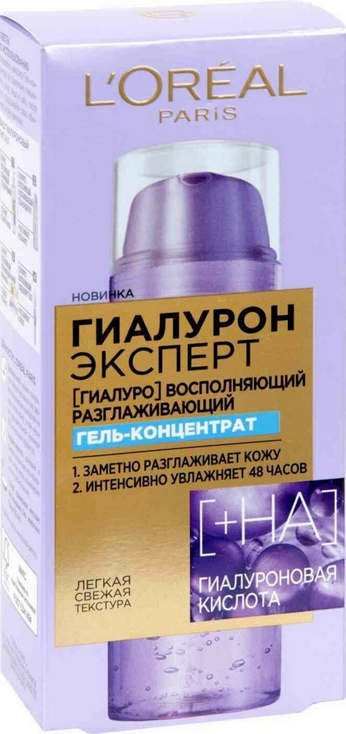 L'Oreal Paris Гиалурон Эксперт Восполняющий разглаживающий гель-концентрат для лица, 50 мл интересное:
