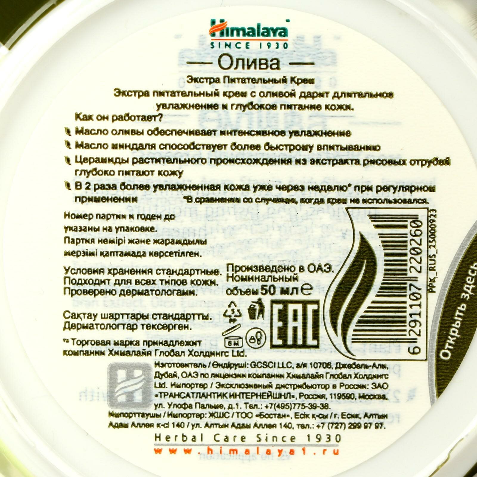 Himalaya Since 1930 Крем для лица и тела Экстра Питательный Олива увлажняющий с маслом миндаля и оливы, 50 мл