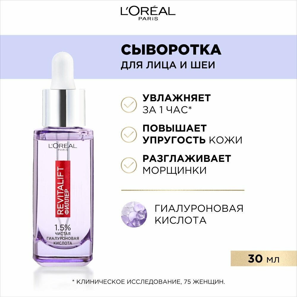 L'OREAL Сыворотка для лица и шеи Revitalift филлер c 1,5% чистой гиалуроновой кислотой, 15 мл