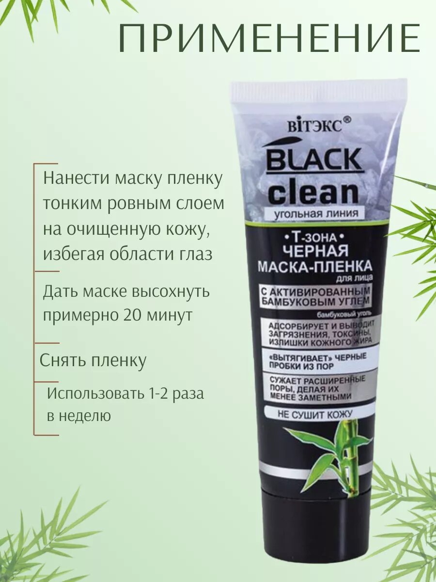 Витэкс Черная маска-пленка "Т-зона" с активированным бамбуковым углем Black Clean, 75 мл