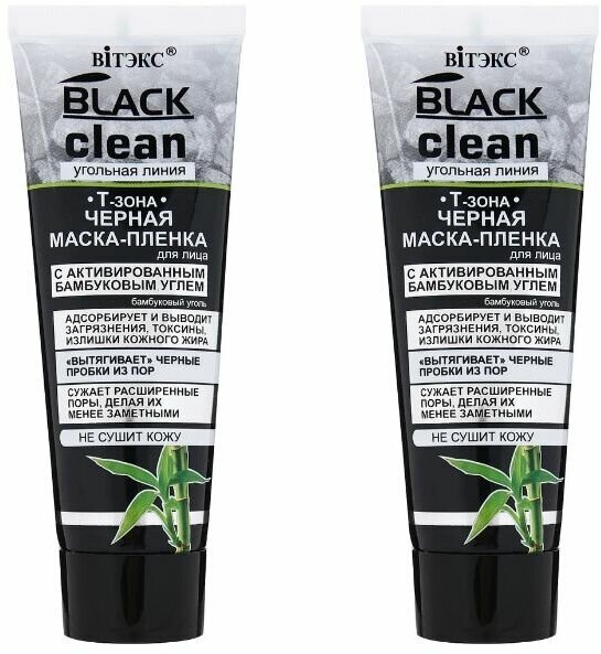Купить Витекс Маска-пленка от черных точек для Т-зоны с активированным бамбуковым углем Black Clean 2 шт по 75 мл