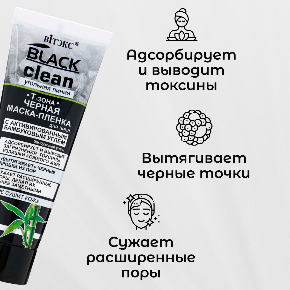 Витэкс Черная маска-пленка "Т-зона" с активированным бамбуковым углем Black Clean, 75 мл