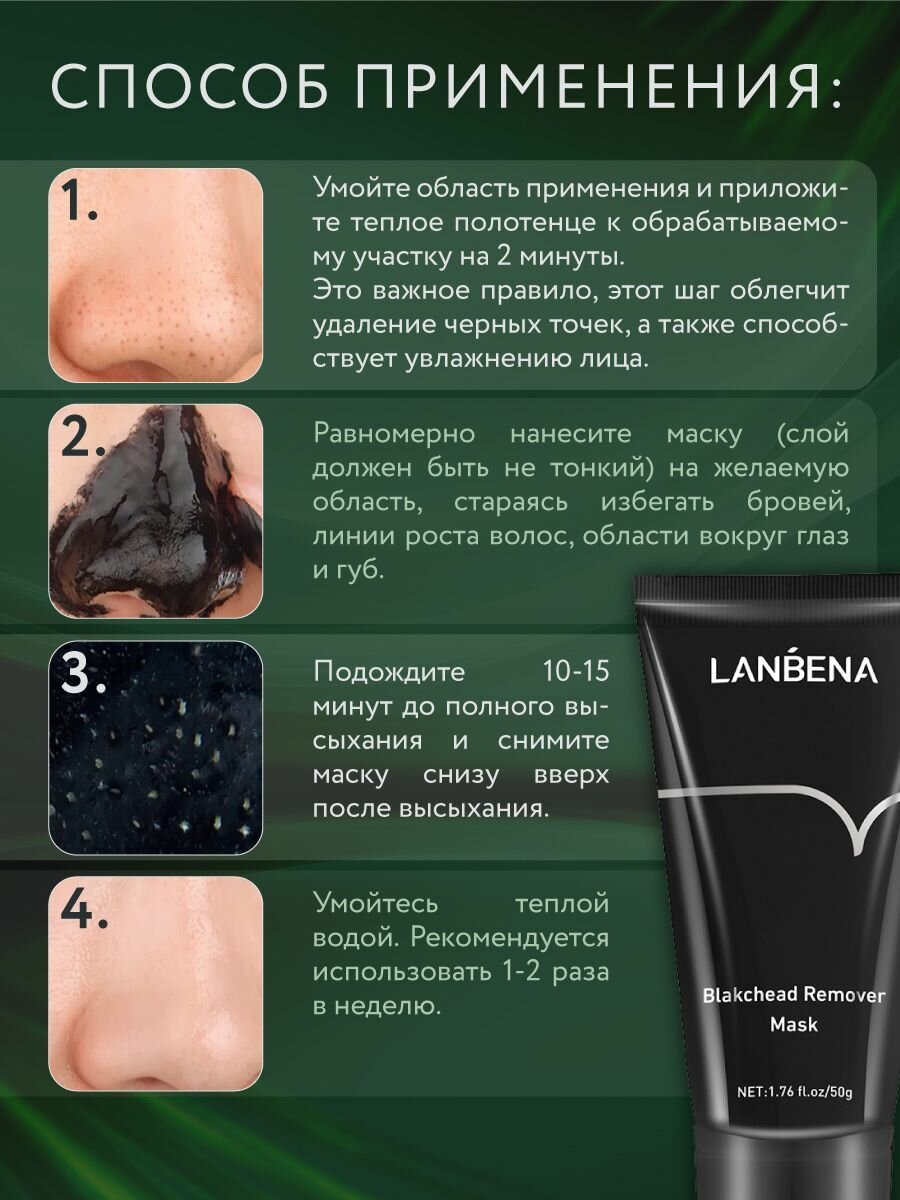Маска от черных точек Lanbena усовершенствованная формула 2.0 / Очищающая маска для лица