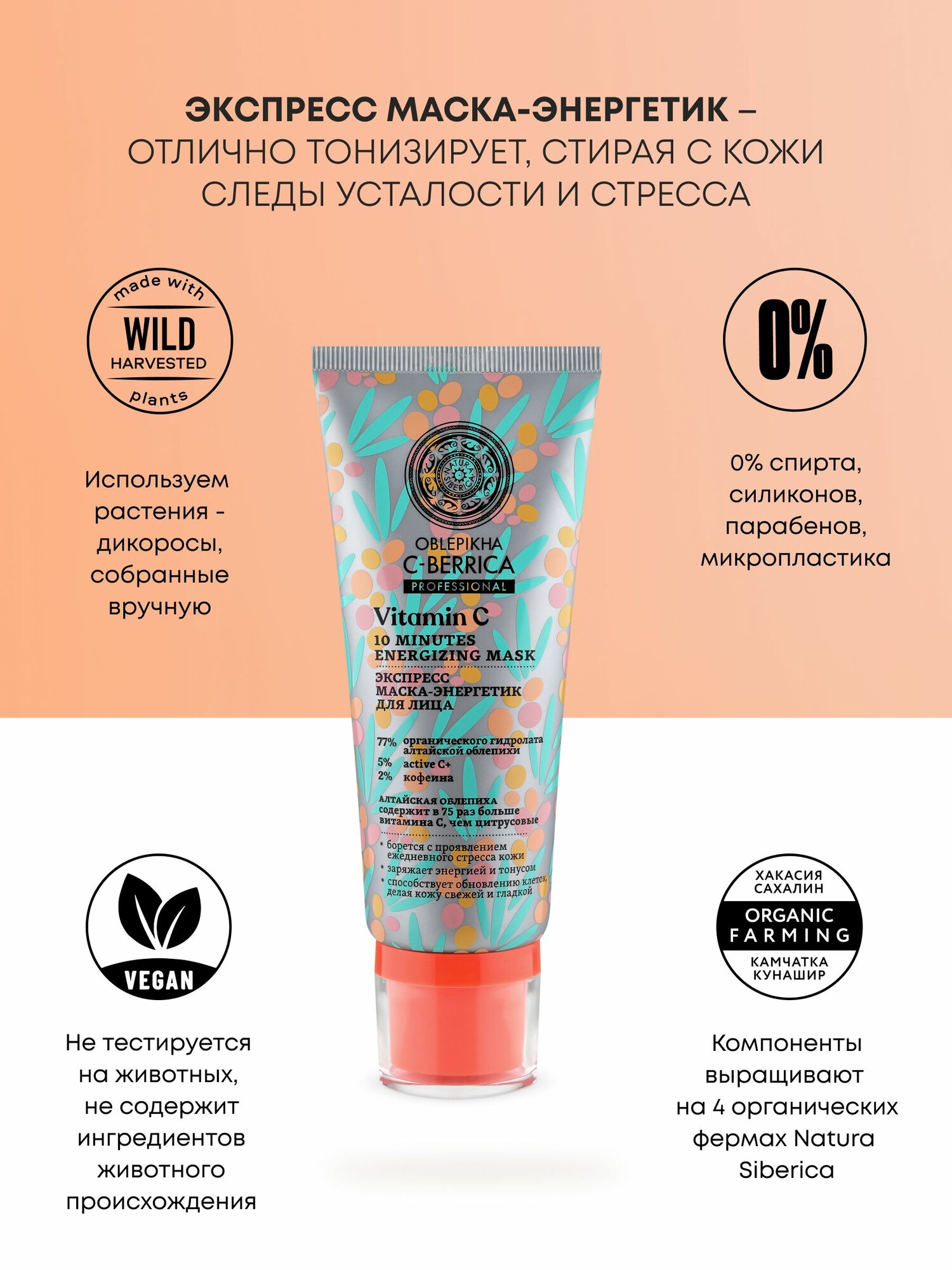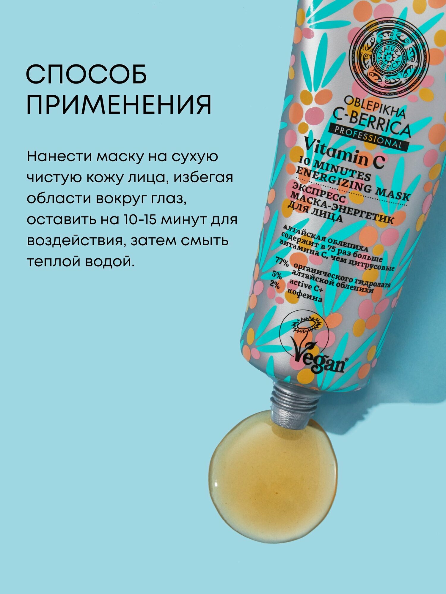 Natura Siberica Oblepikha C-BERRICA Экспресс маска для лица с витамином С и кофеином охлаждающая освежающая тонизирующая, питательная и увлажняющая 100 мл интересное: