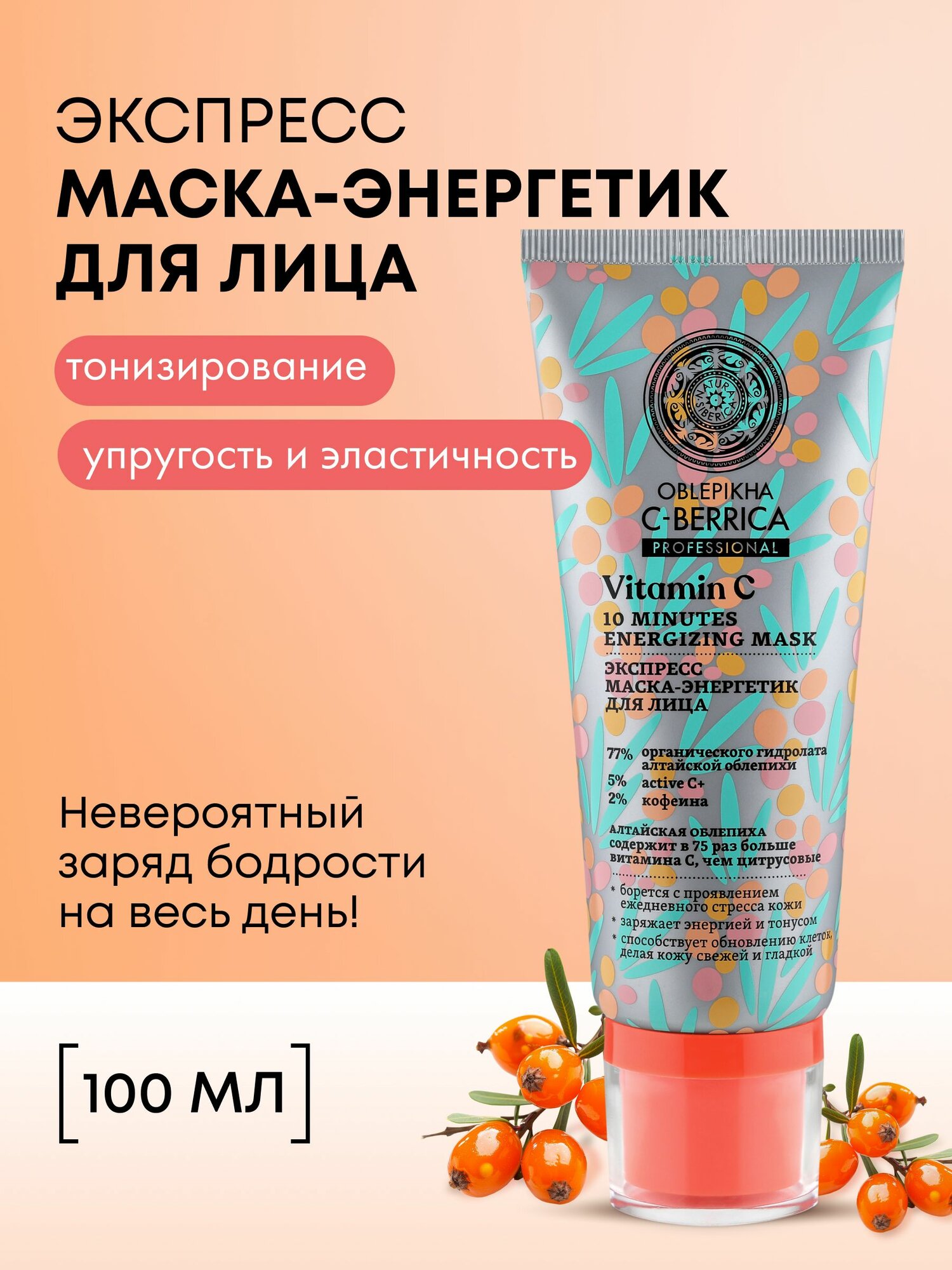 Экспресс маска-энергетик Natura Siberica Oblepikha C-BERRICA для лица, 100 мл