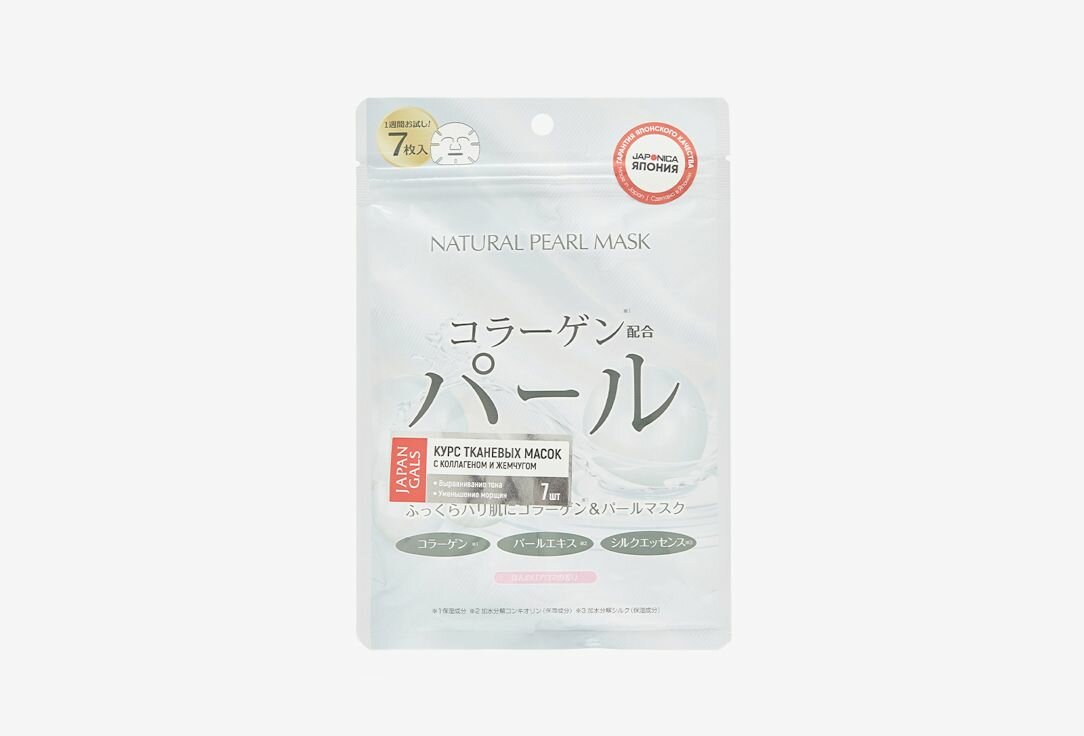JAPAN GALS Маски для лица тканевые натуральные (7 шт) с экстрактом жемчуга и коллагеном, увлажняющие, питательные / Для упругости и сияния кожи, против морщин (Япония)