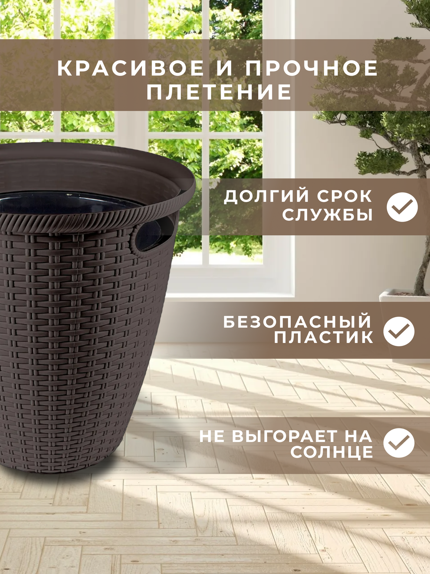 Кашпо напольное Ротанг 20 л, с внутренним горшком 11 л, горький шоколад