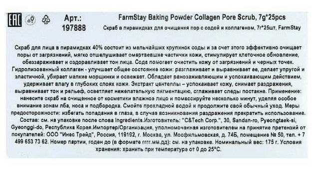 СохранитьFarmStay скраб для лица Baking Powder Collagen Pore Scrub, 7 мл, 7 г, 25 шт. интересное: