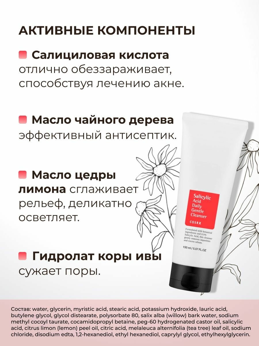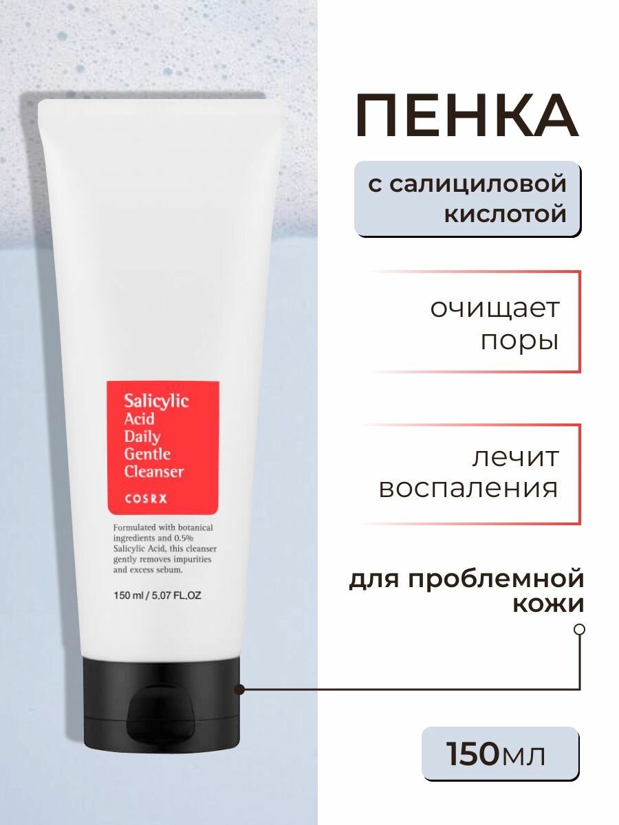 СохранитьПенка с салициловой кислотой для проблемной кожи, корейская косметика бренда COSRX Salicylic Acid Daily Gentle Cleanser, 150 мл интересное: