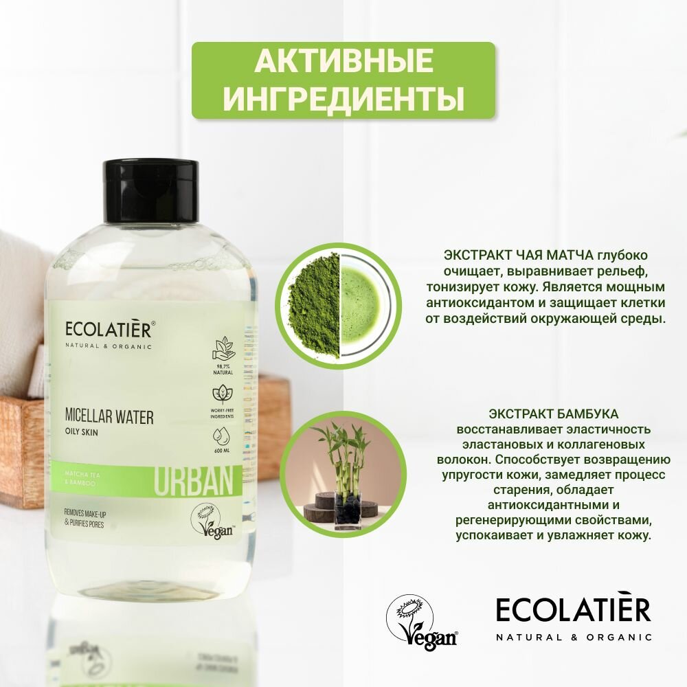 Ecolatier Urban Мицеллярная вода для снятия макияжа чай матча & бамбук 600 мл 1 шт интересное: