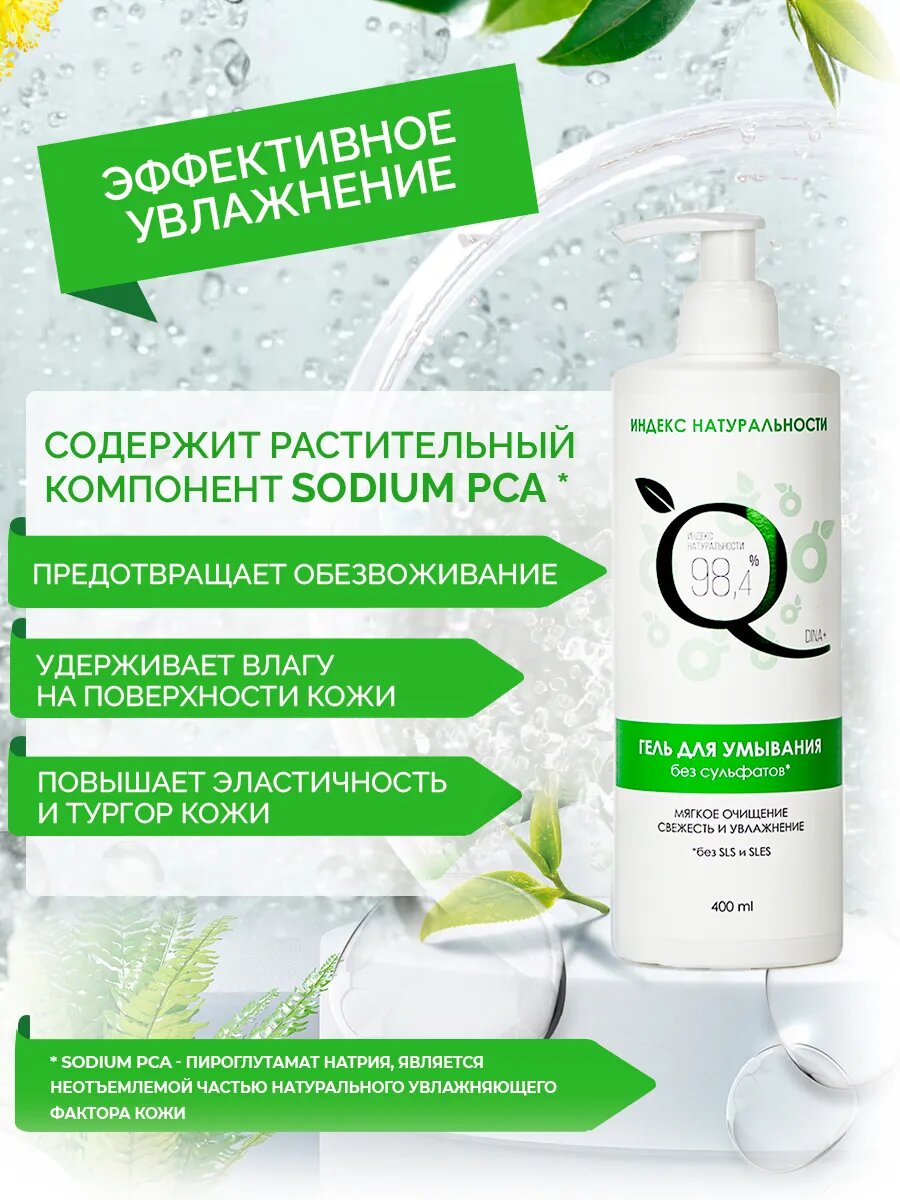 Гель для умывания ИНДЕКС НАТУРАЛЬНОСТИ для кожи лица очищение и увлажнение 400 мл