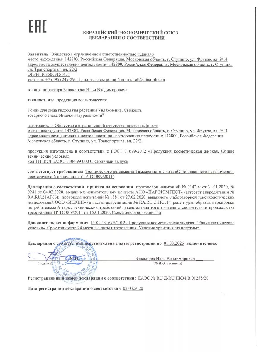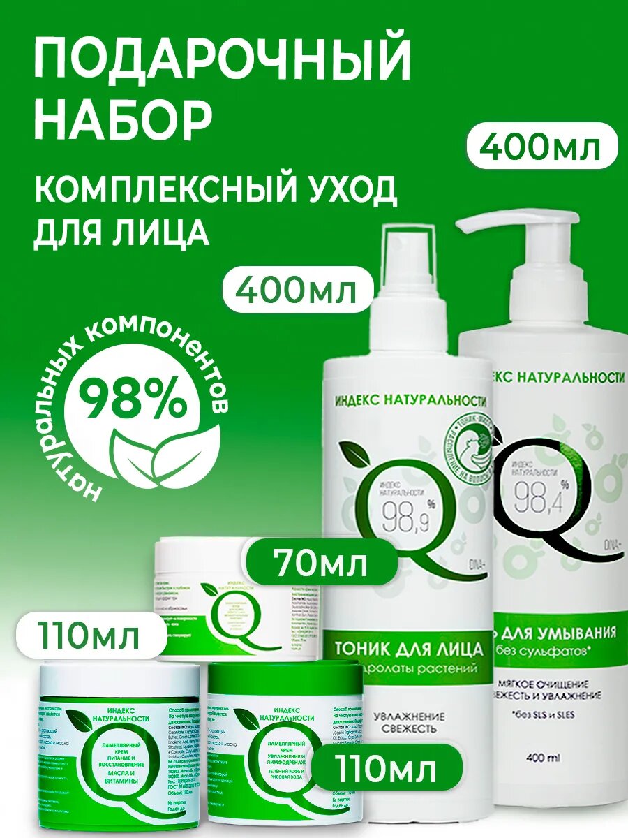 Гель для умывания 400 мл и тоник 400 мл индекс натуральности