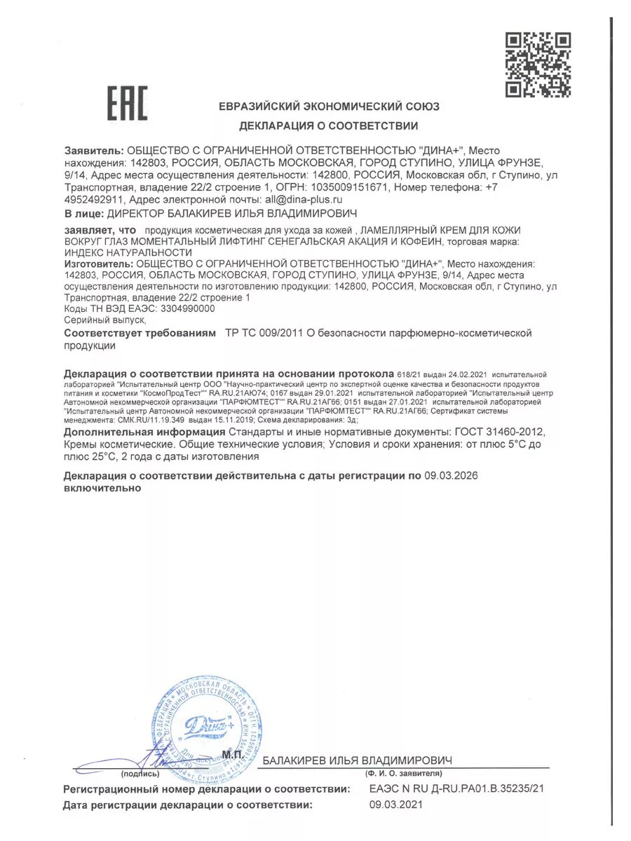 | Эффект | восстановление / омоложение / очищение / питание / снятие воспалений / тонизирование / увлажнение |