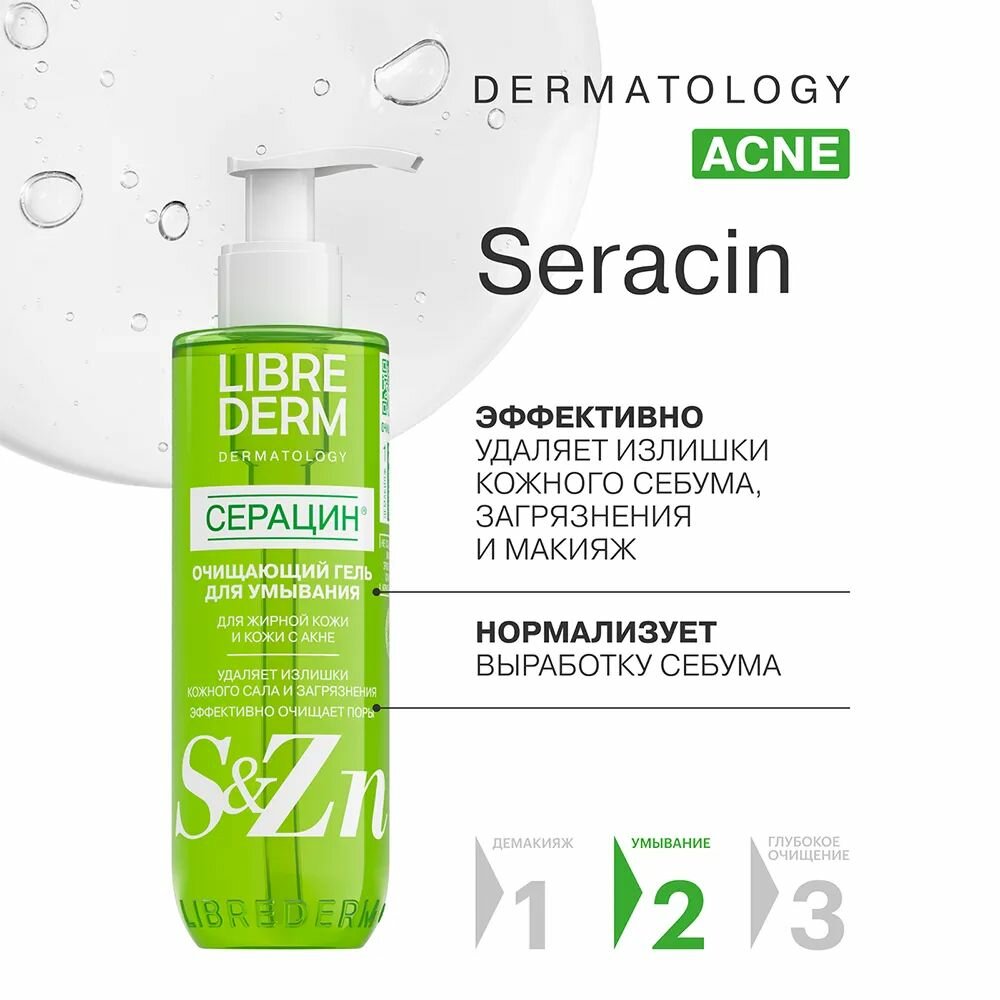 LIBREDERM SERACIN/ серацин Очищающий гель для умывания для жирной кожи лица и кожи с акне 150 мл
