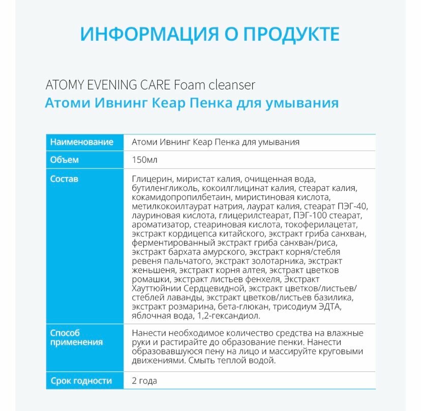 Пенка для умывания Атоми 150 мл /Foam Cleanser Atomy, Корея интересное: