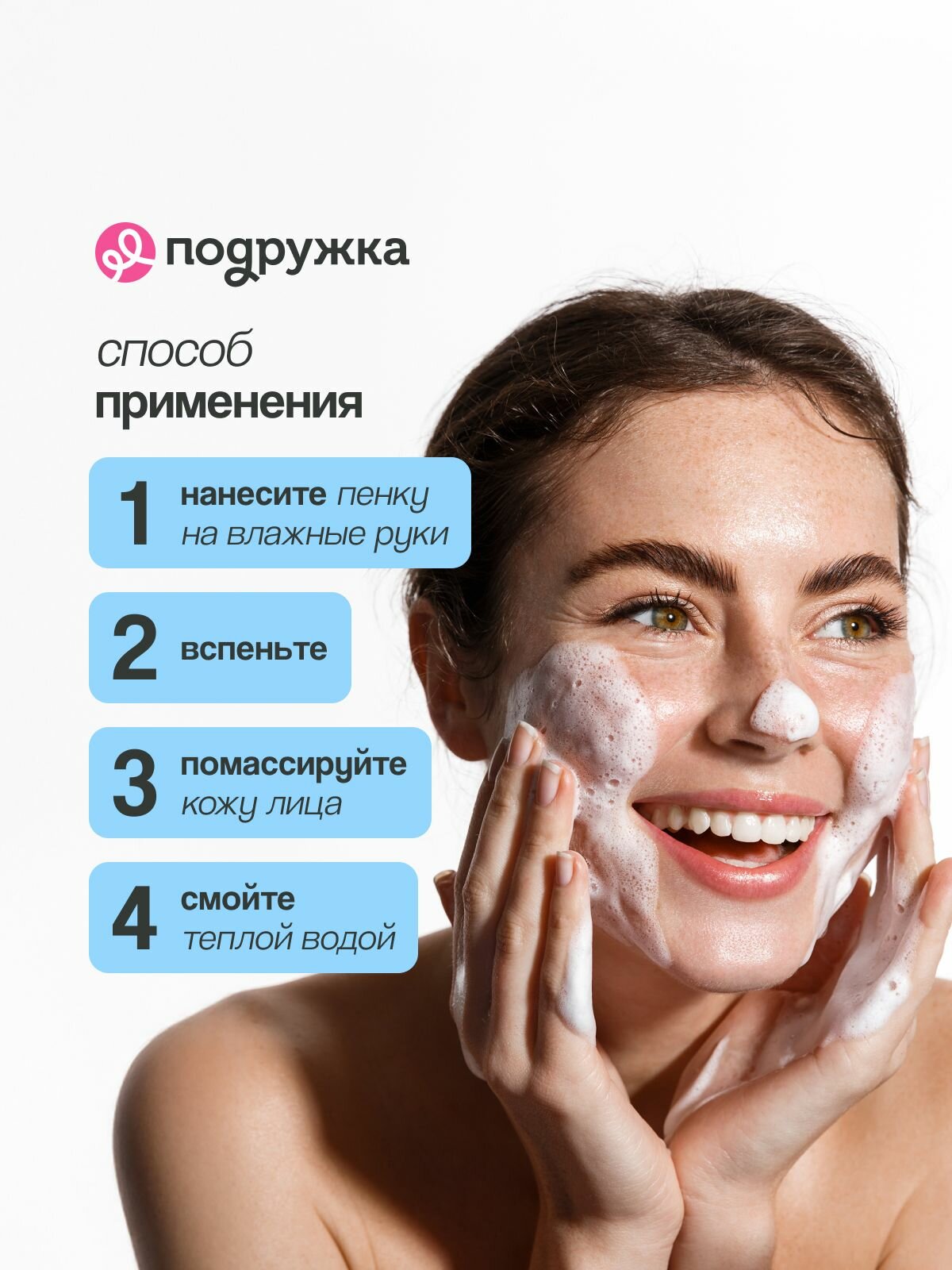 | Способ применения | Нанесите небольшое количество средства на влажные руки, вспеньте и легкими круговыми движениями помассируйте кожу лица для очищения. Смойте теплой водой. Только для наружного применения. Избегайте контакта с глазами. Хранить в недоступных для детей местах. В случае появления раздражения, немедленно прекратить использование. Хранить при температуре от +5°С до +25°С. |