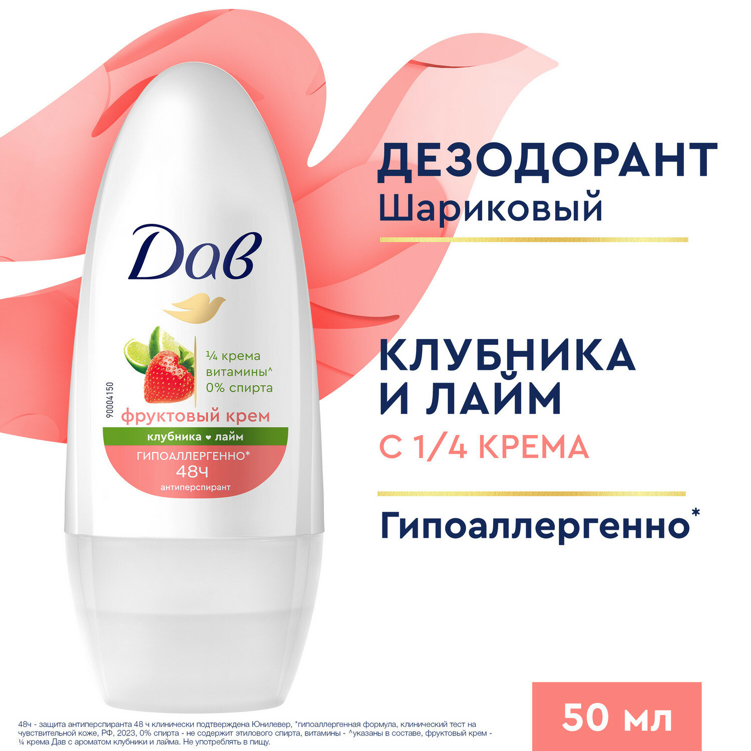 Дезодорант Dove Клубника и лайм, шариковый, 50 мл