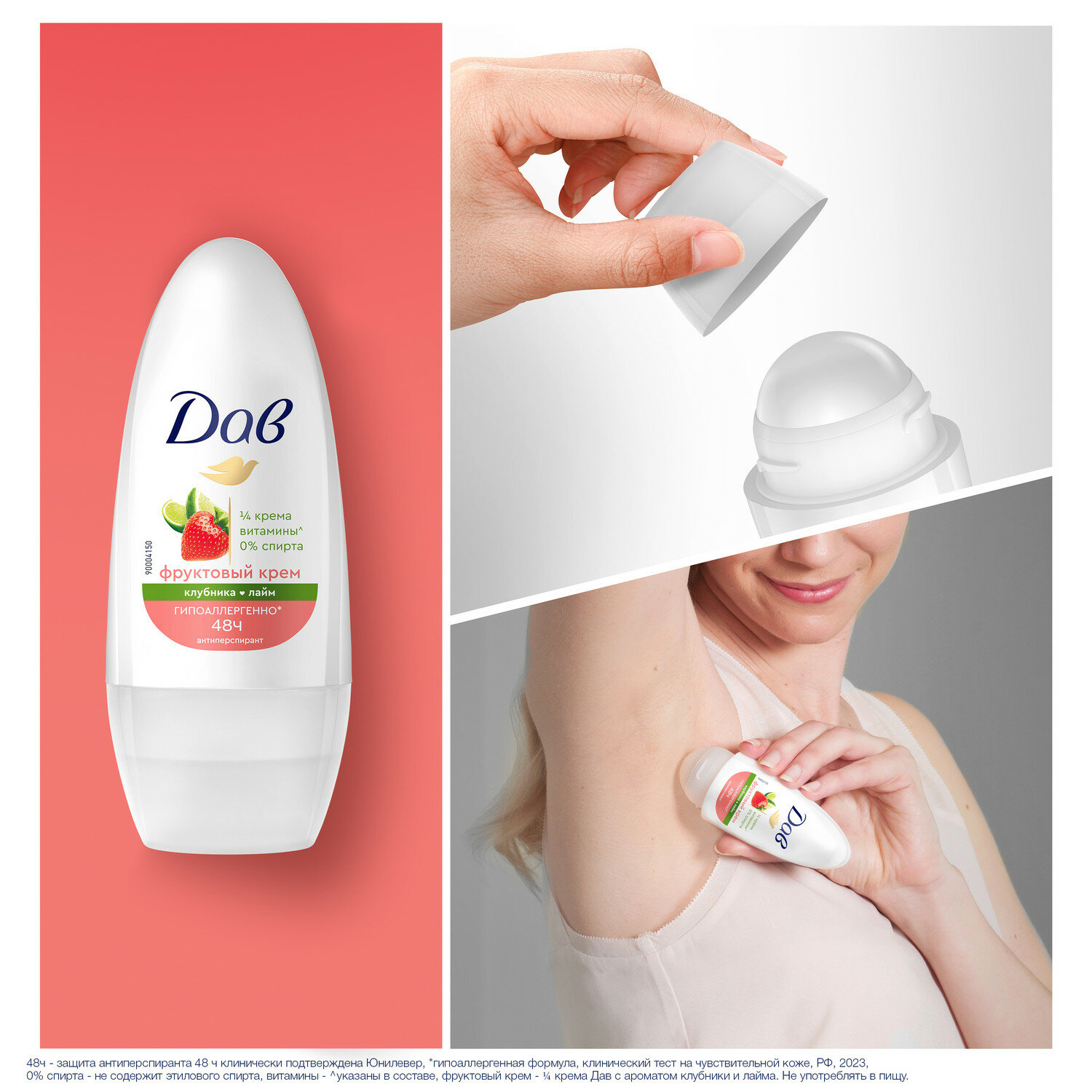 Дезодорант женский шариковый антиперспирант Дав с ароматом клубники и лайма, 50 мл интересное: