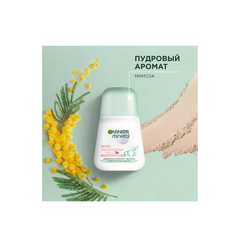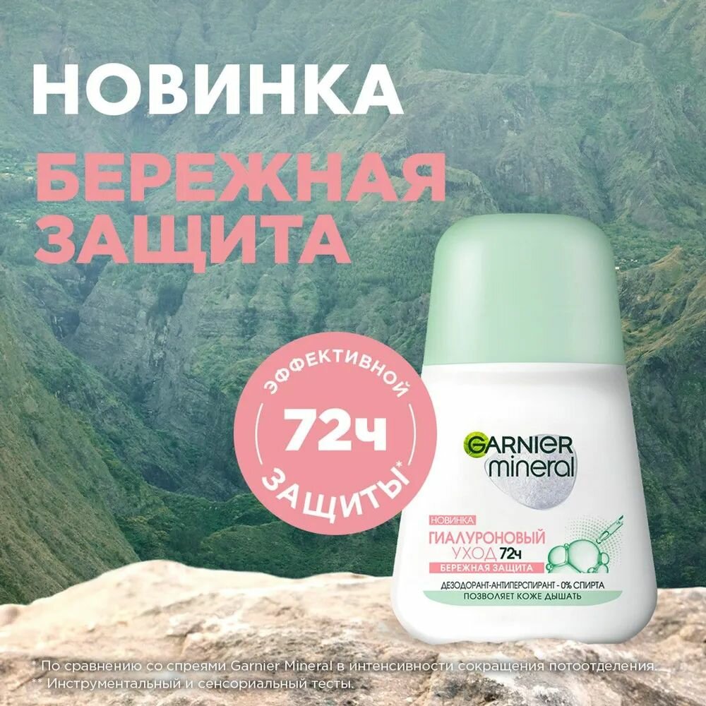 Garnier Дезодорант-антиперспирант роликовый для тела Mineral Гиалуроновый уход 72ч, женский, 50 мл