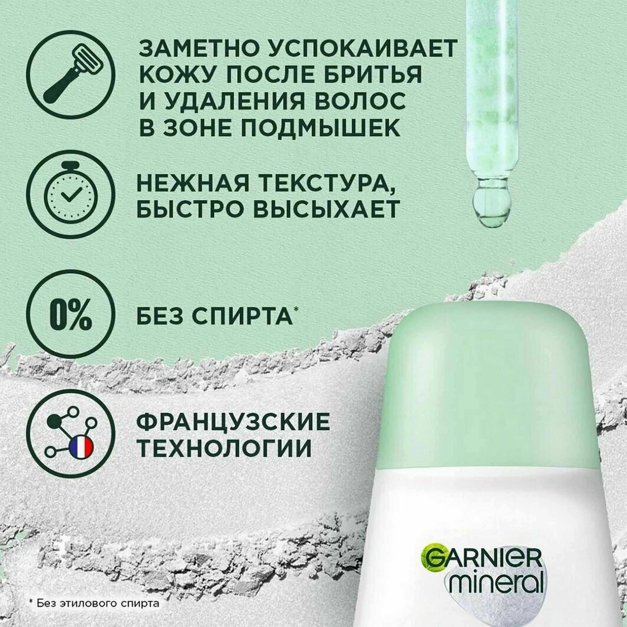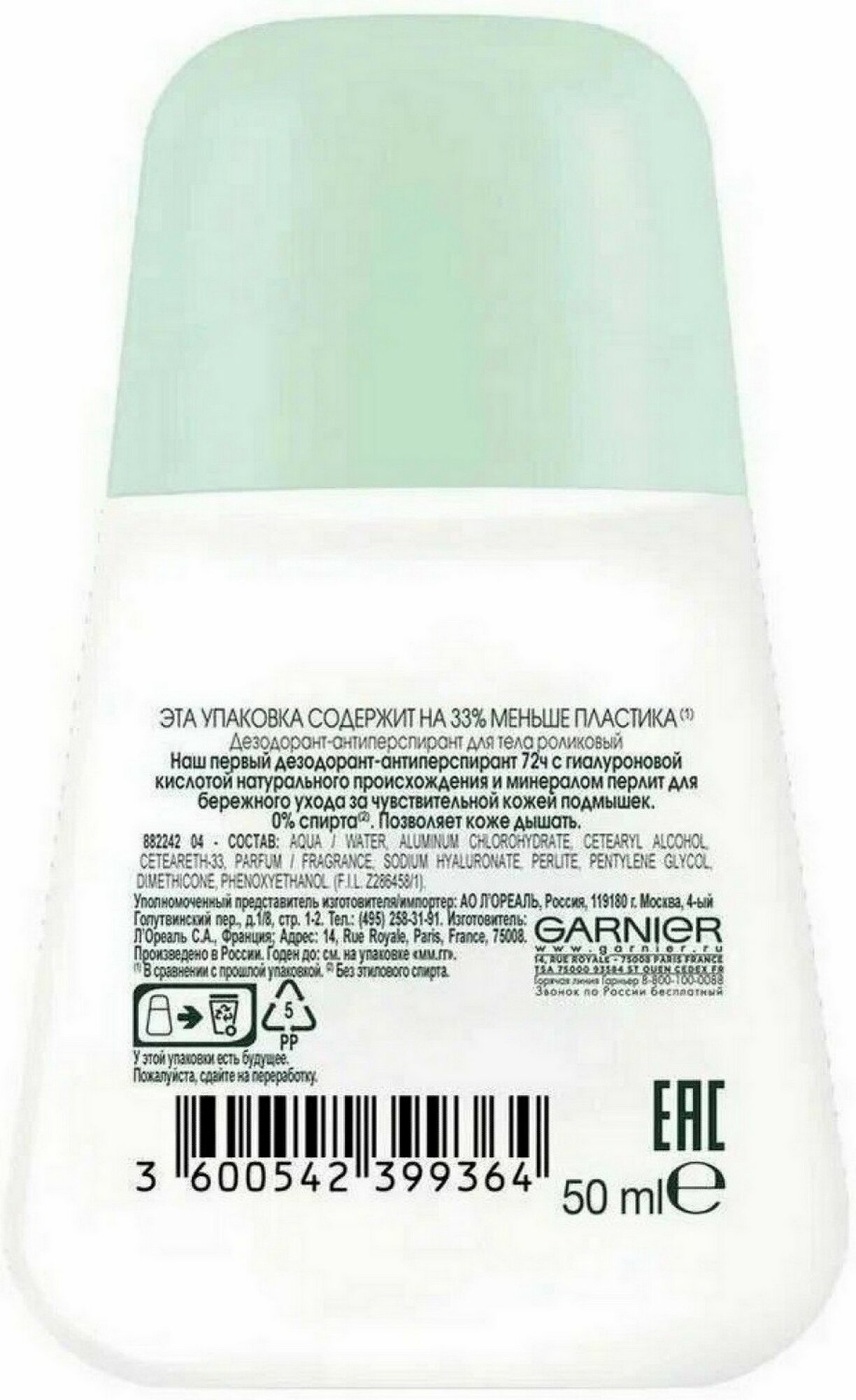 GARNIER Дезодорант-антиперспирант для тела Mineral Гиалуроновый уход, ролик, флакон, 50 мл, 80 г интересное: