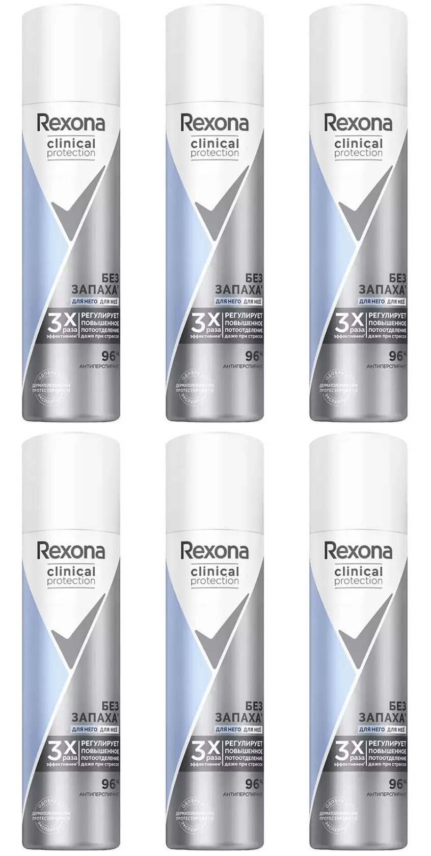 СохранитьRexona Антиперспирант-аэрозоль Clinical Protection Гипоаллергенный без запаха, 150 мл, 6 шт интересное: