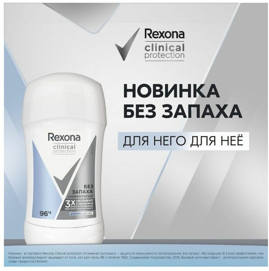 Rexona Дезодорант-антиперспирант стик Clinical protection Гипоаллергенный без запаха 40 мл - 1 шт