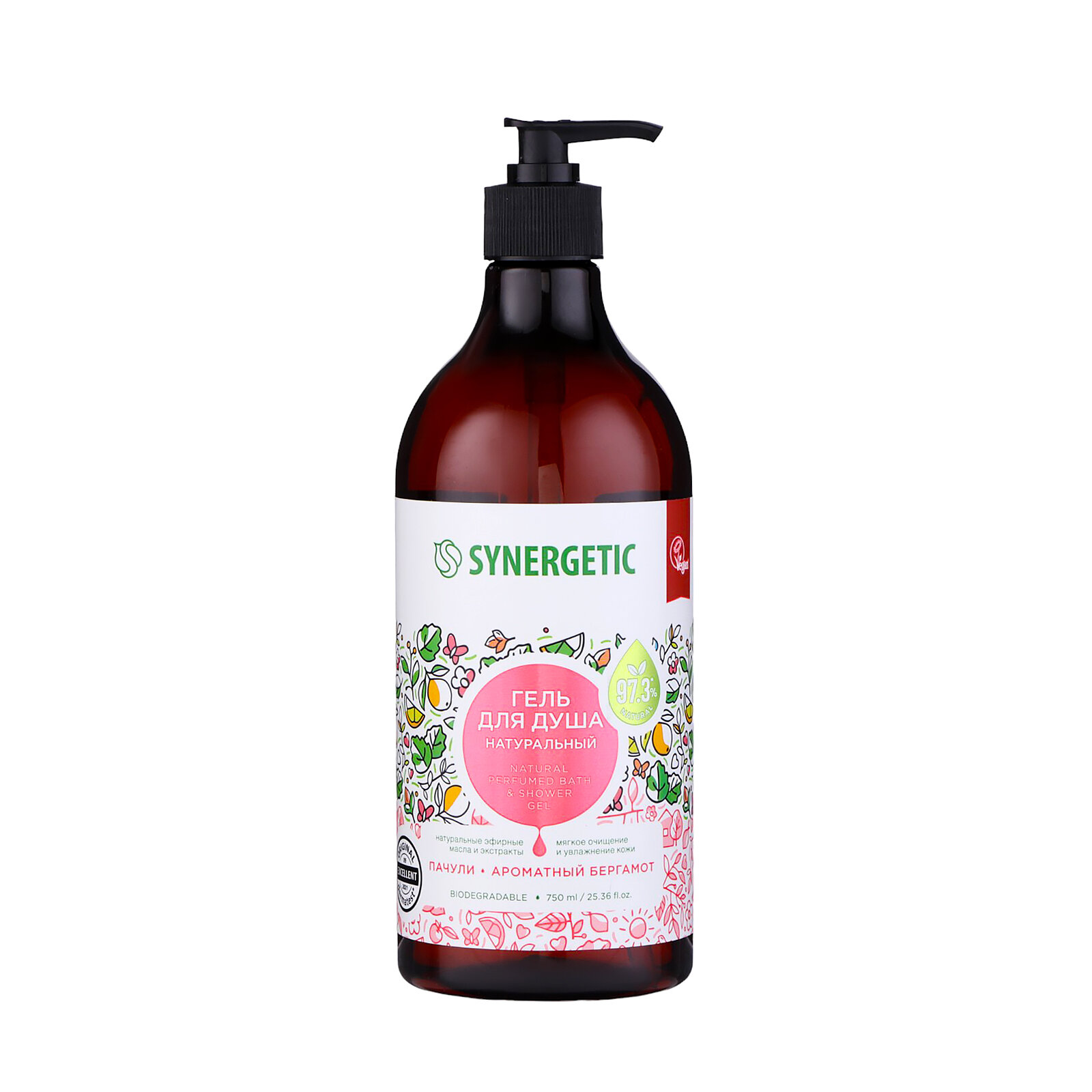 Гель для душа SYNERGETIC "Пачули и ароматный бергамот" увлажняющий, натуральный, 750мл