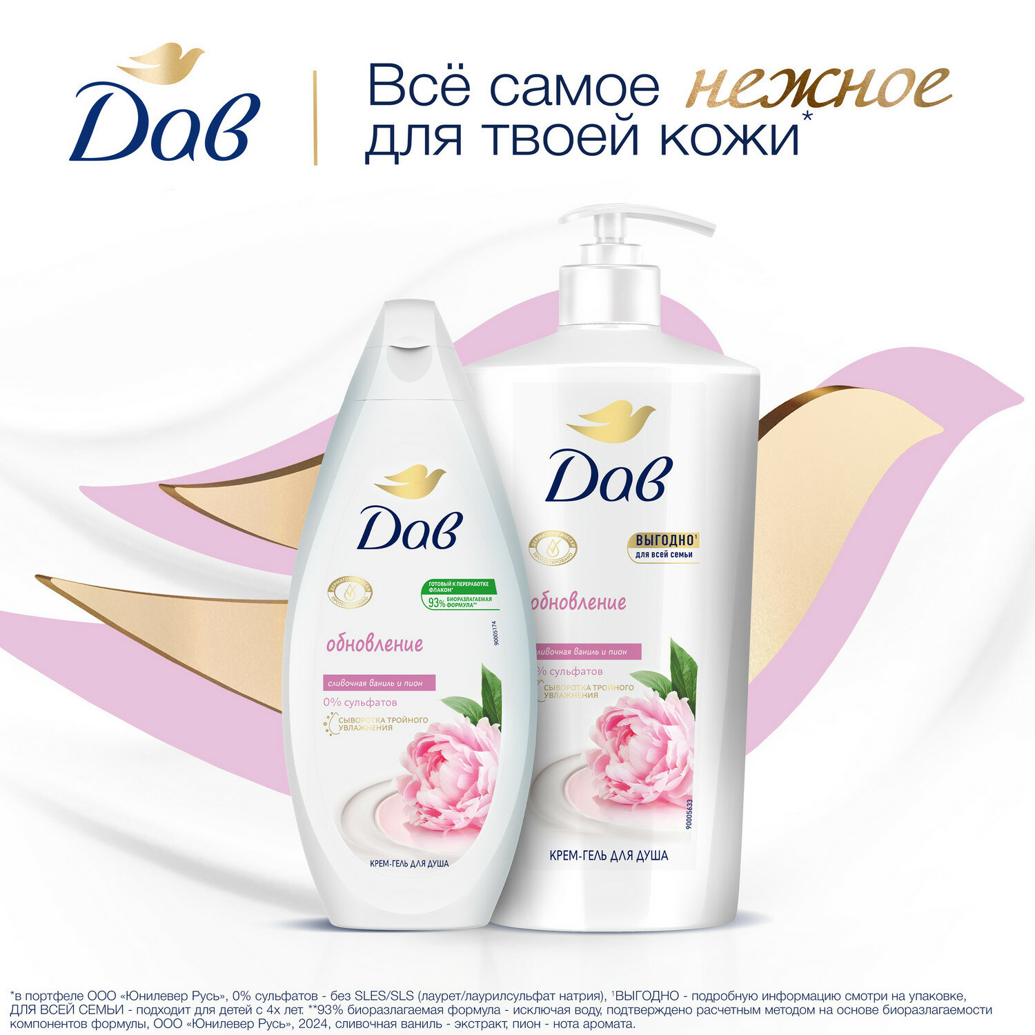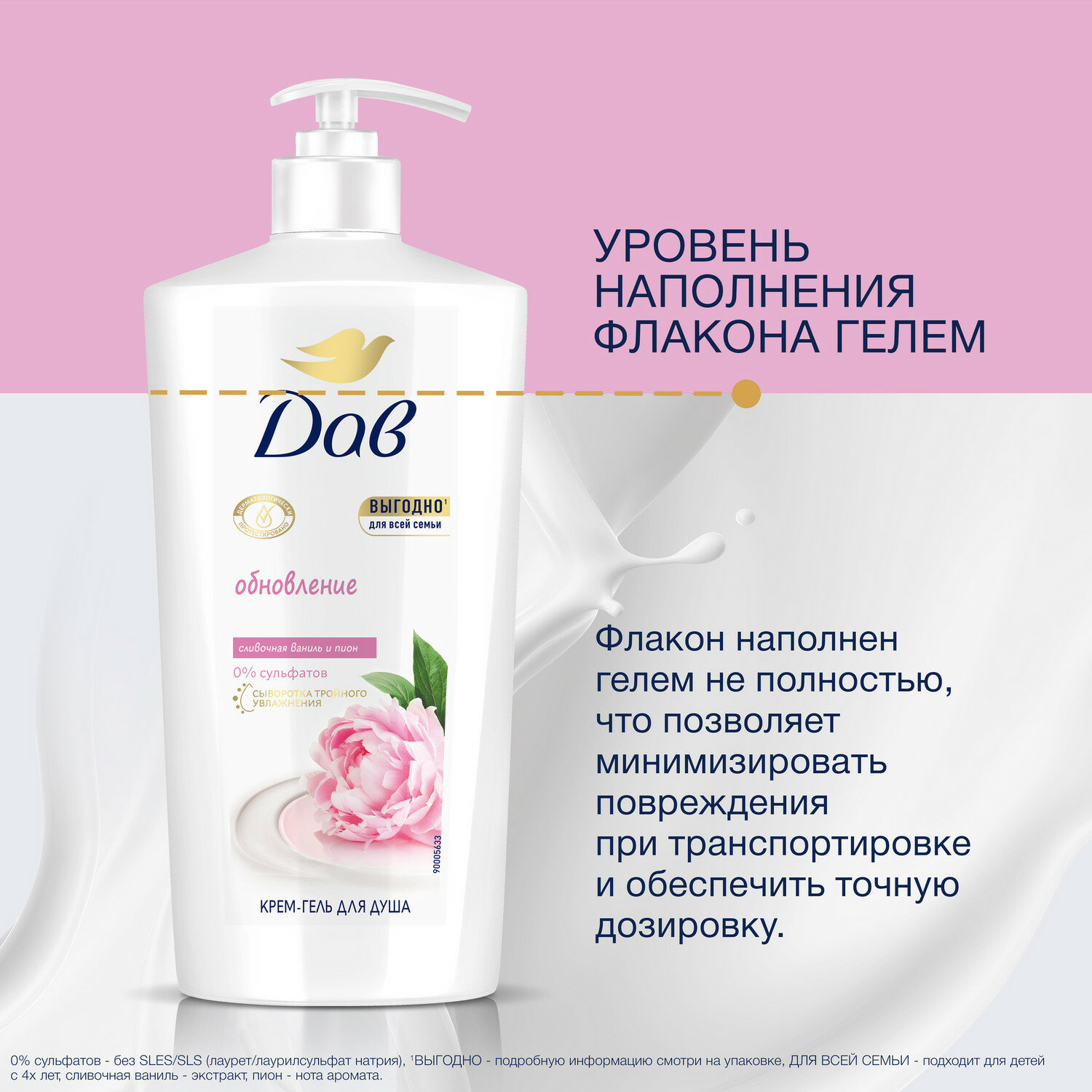 Dove бессульфатный крем-гель для душа обновление Сливочная ваниль и пион с розовым маслом 250 мл