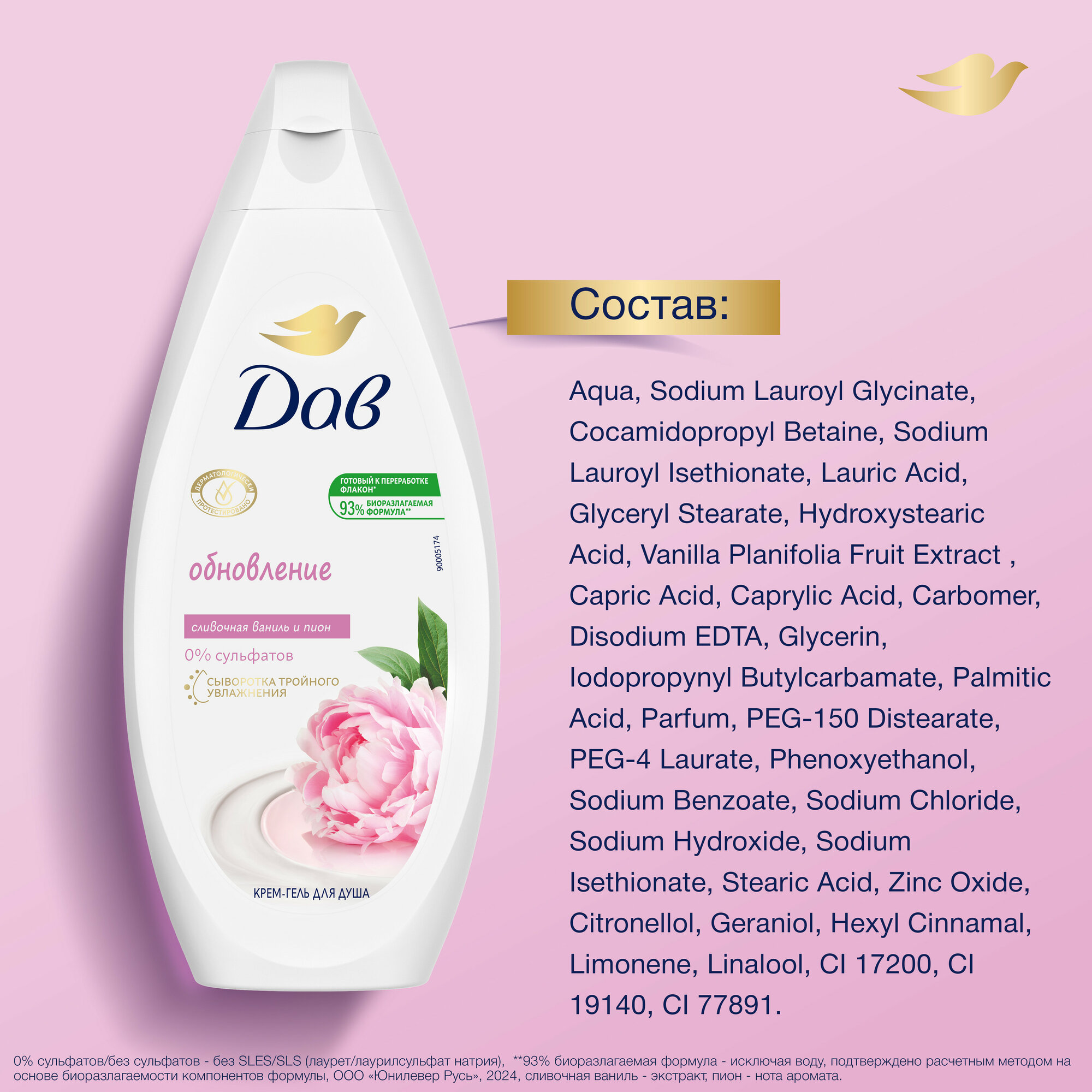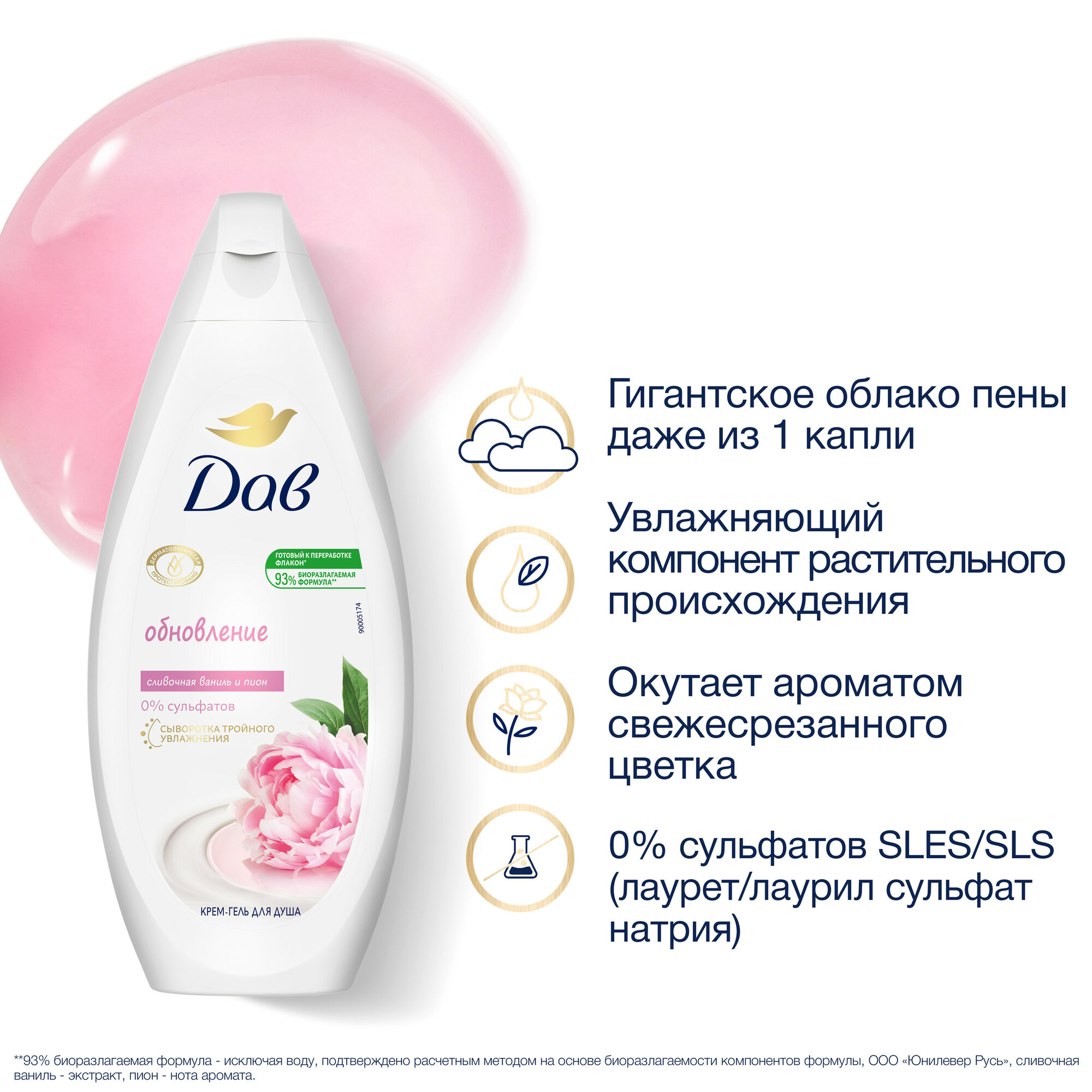 Dove бессульфатный крем-гель для душа обновление Сливочная ваниль и пион с розовым маслом 250 мл