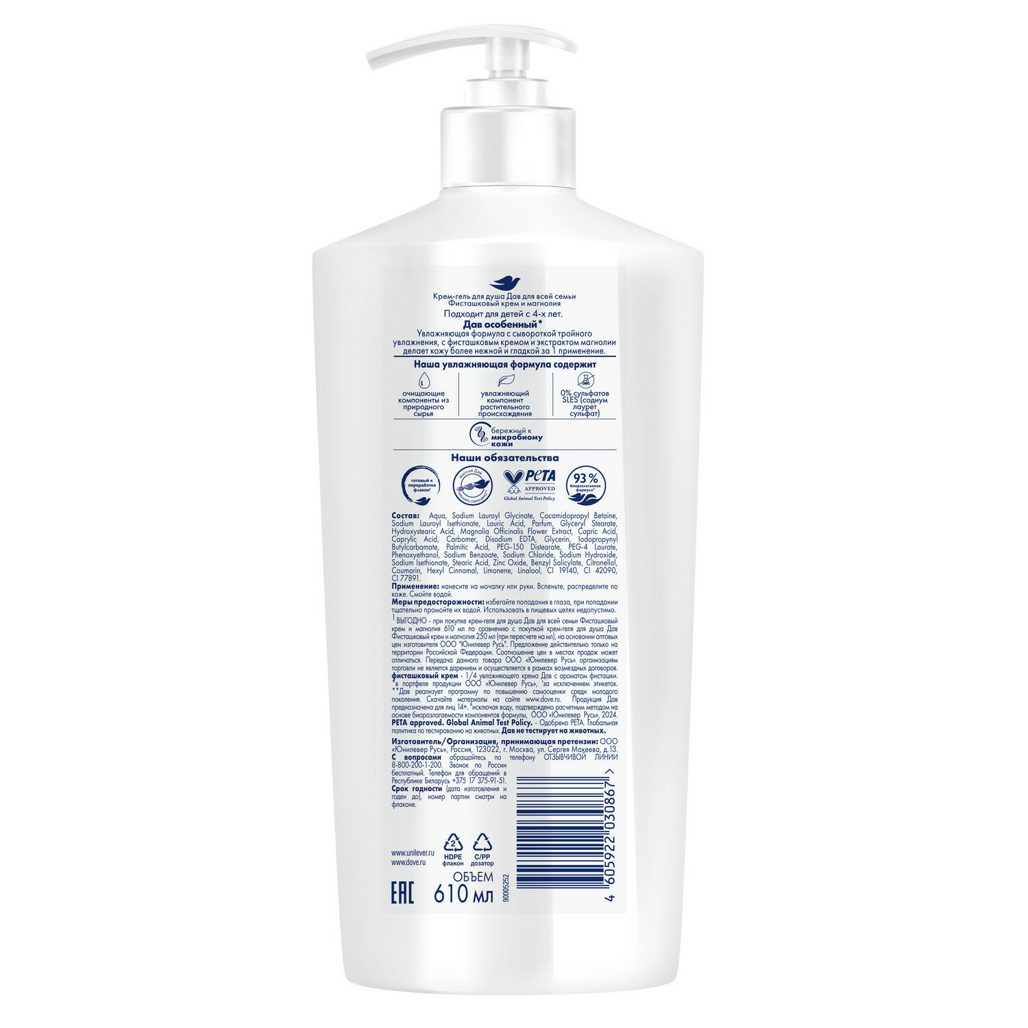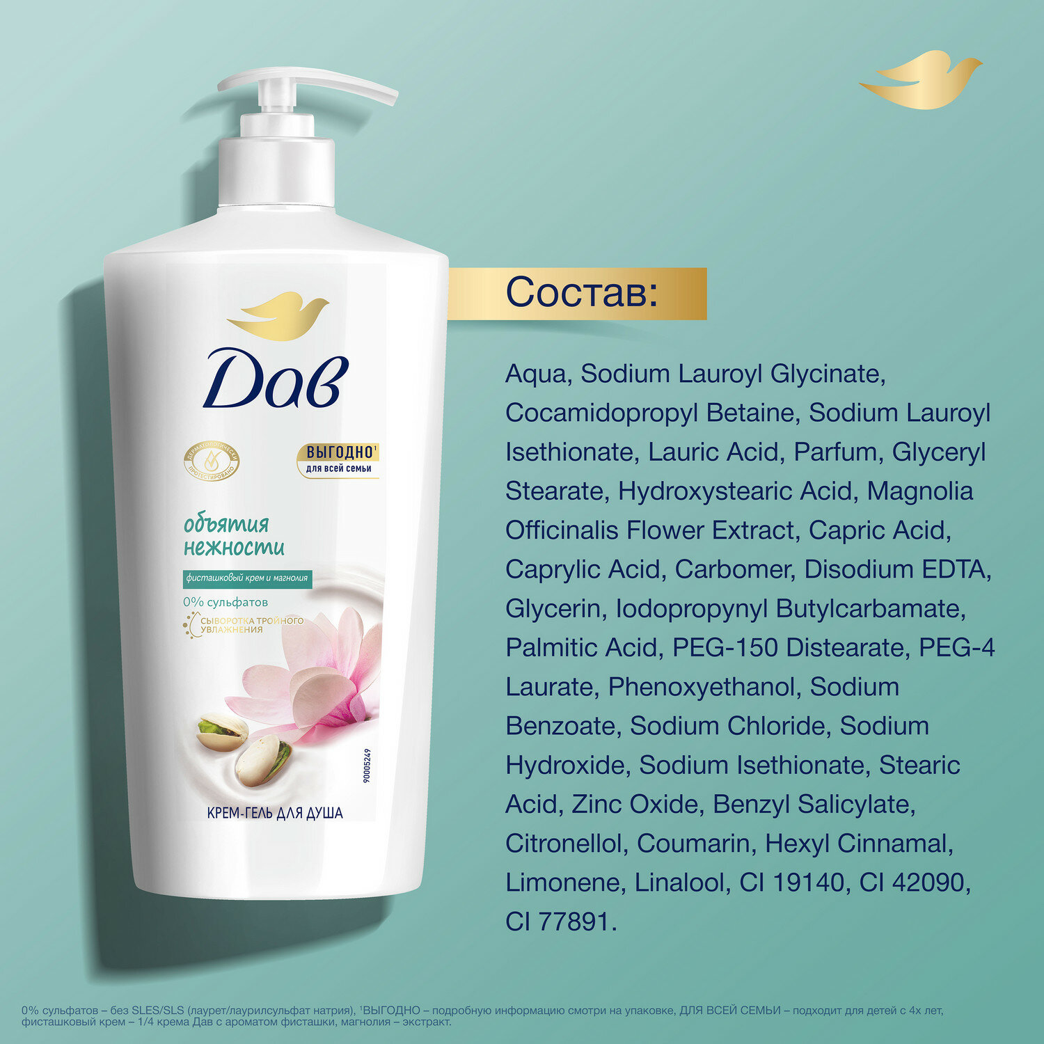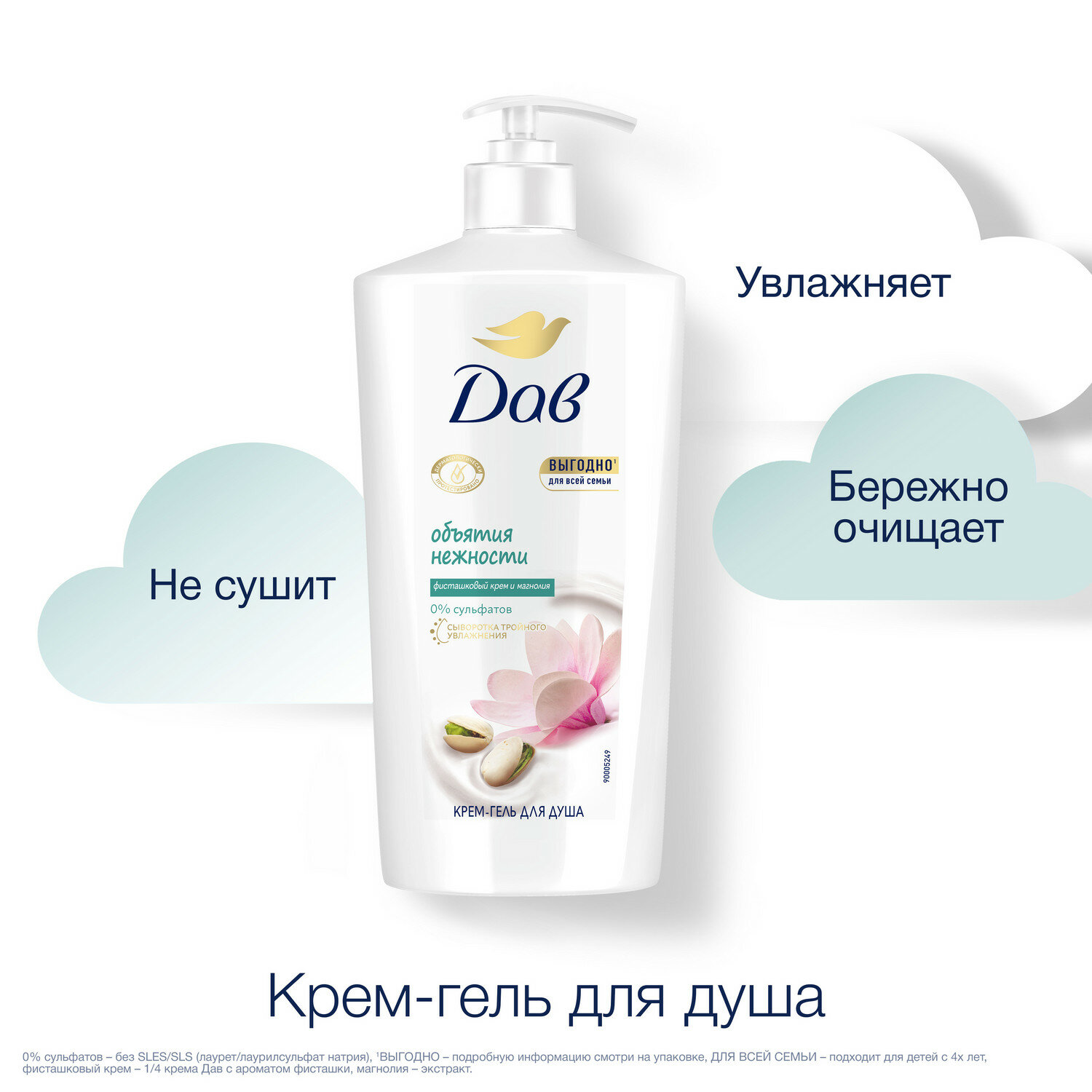 DOVE крем-гель для душа фисташковый крем И магнолия для всей семьи бессульфатный с сывороткой тройного увлажнения 610 мл