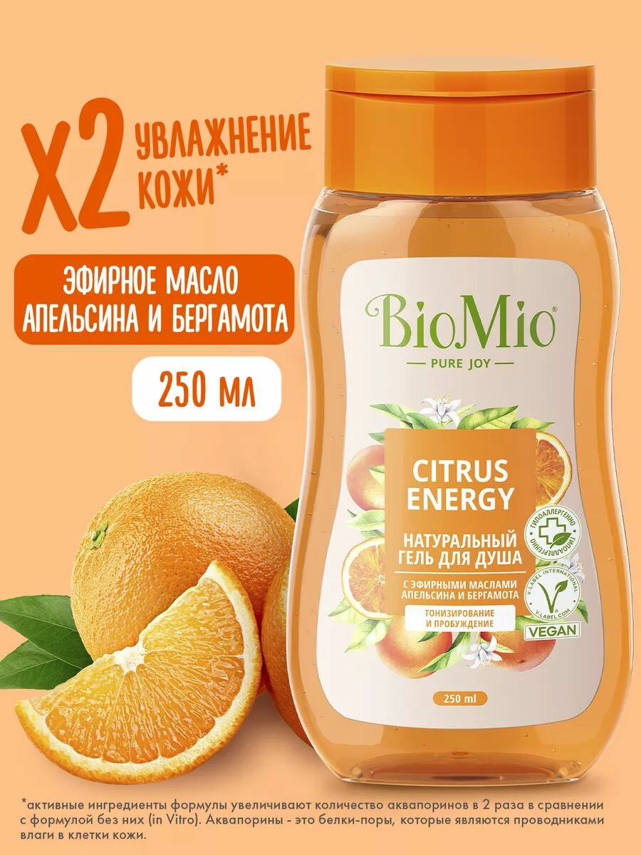Гель для душа BioMio натуральный, с эфирными маслами апельсина и бергамота, 250 мл, 2 шт
