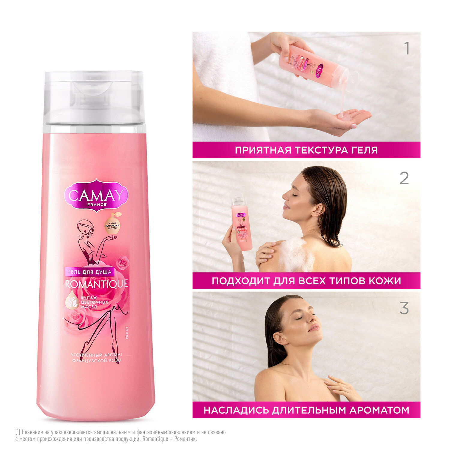 Купить Гель для душа женский парфюмированный CAMAY Романтик с ароматом французской розы для всех типов кожи 250 мл