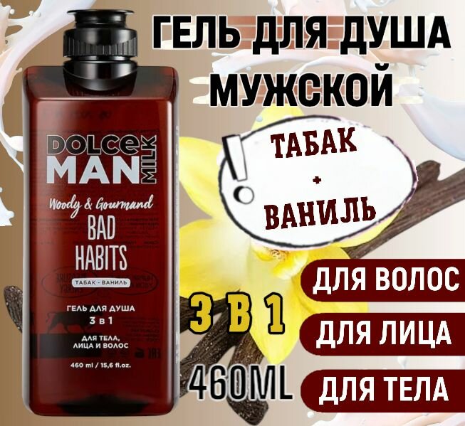 DOLCE MILK Гель для душа 3 в 1 «ВРЕДНЫЕ ПРИВЫЧКИ», 460 мл, мужской, для всех типов