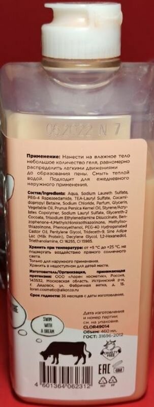 | Способ применения | Насти на влажное тело небольшое количество геля, равномерно распределить легкими движениями до образования пены. Смыть теплой водой. Подходит для ежедневного наружного применения. Избегайте попадания в глаза! |