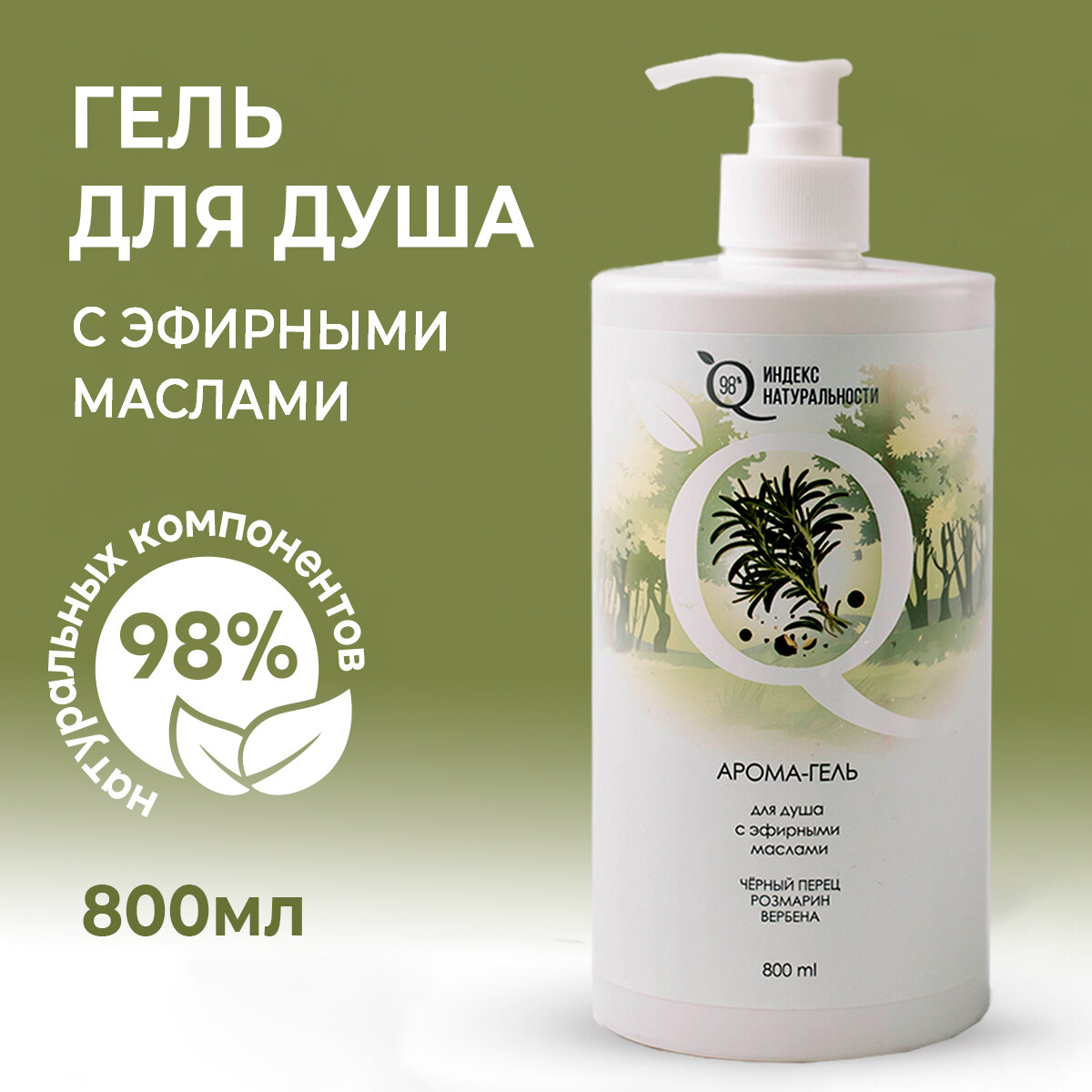 Купить Гель для душа ИНДЕКС НАТУРАЛЬНОСТИ Арома-гель с эфирными маслами 800 мл
