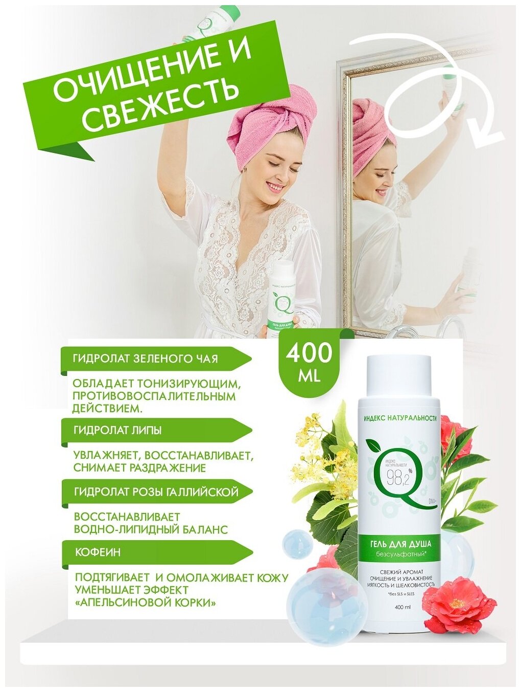 СохранитьНатуральный гель для душа без сульфатов Увлажняющий 400 ml индекс натуральности интересное: