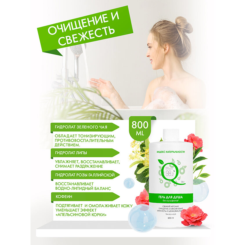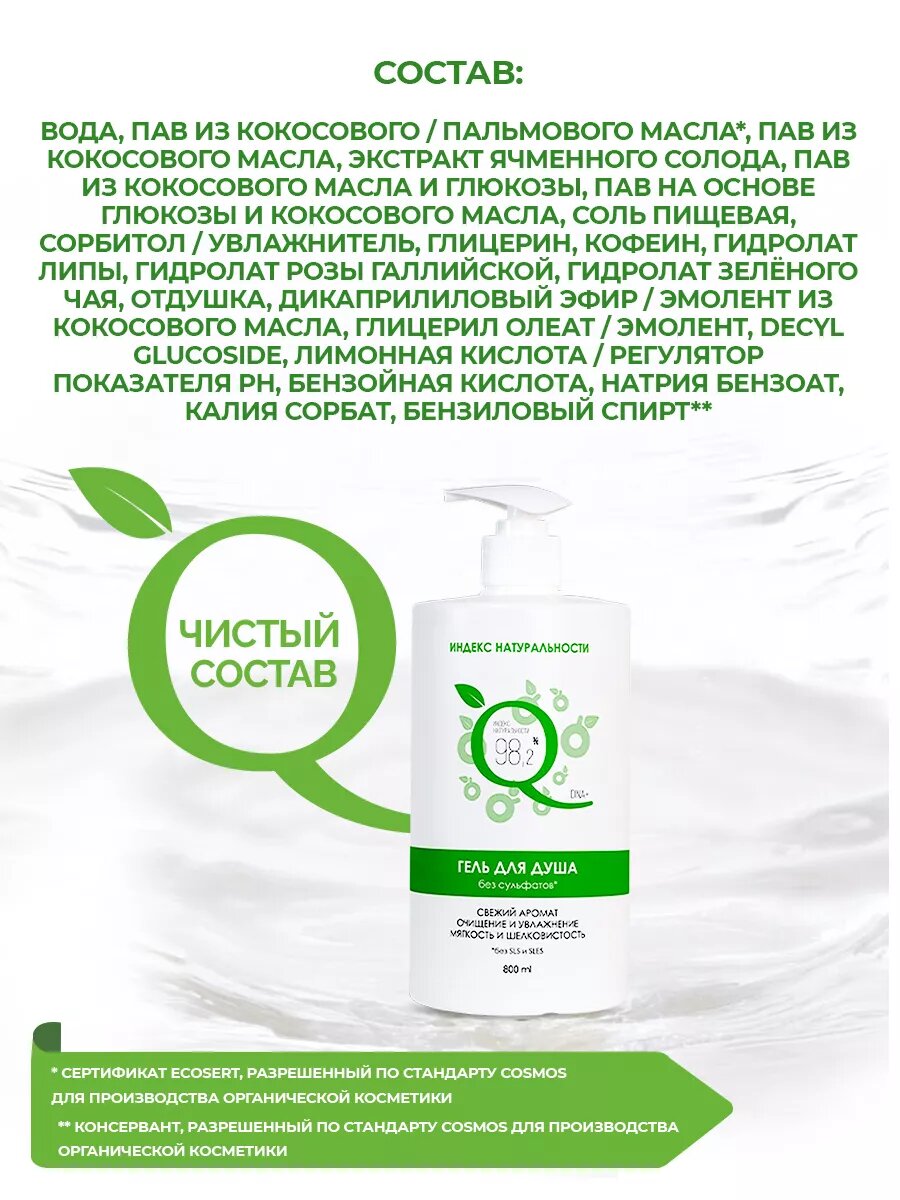 Натуральный гель для душа без сульфатов Увлажняющий 400 ml индекс натуральности