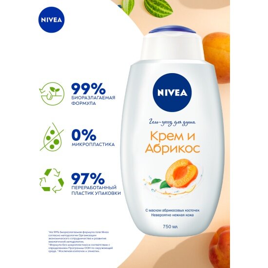 Купить Гель-уход для душа Nivea Крем и абрикос, с абрикосовым маслом, 750 мл
