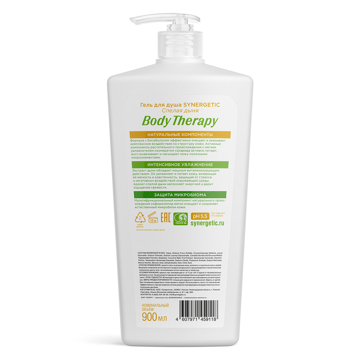 Гель для душа SYNERGETIC Спелая дыня Body Therapy, 900 мл 10629874