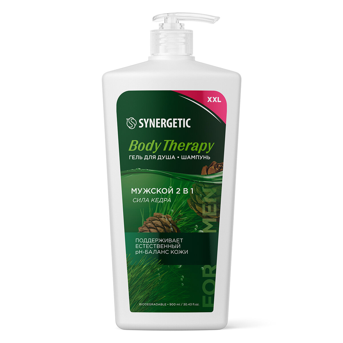 Купить Гель для душа-шампунь 2 в 1 SYNERGETIC мужской Сила кедра BODY THERAPY 900 мл