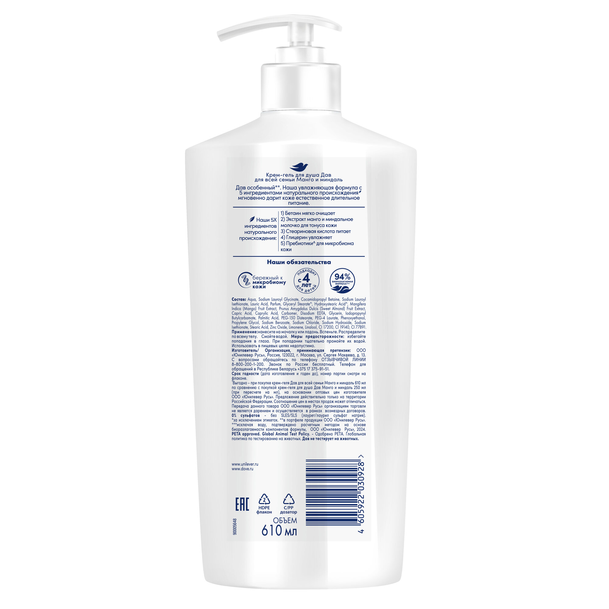DOVE крем-гель для душа для всей семьи манго И миндаль 610 мл