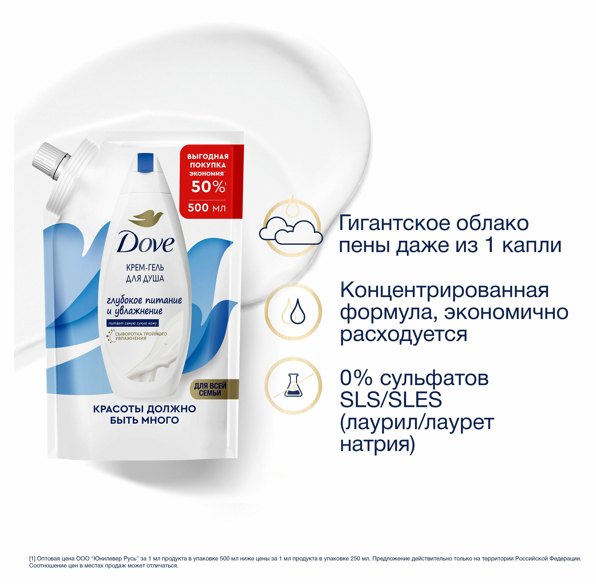 Dove бессульфатный крем-гель для душа Глубокое питание и увлажнение 250 мл - 1 шт
