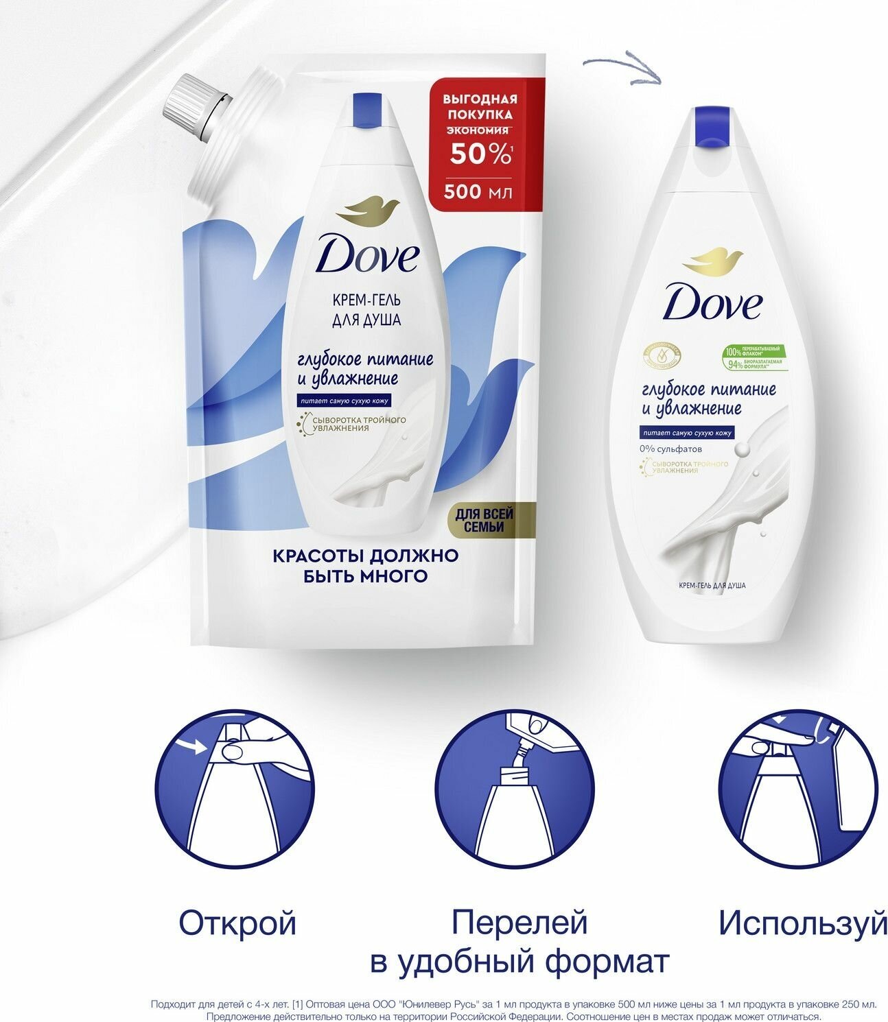 СохранитьКрем-Гель для Душа Dove Глубокое Питание и Увлажнение для Всей семьи 500мл интересное:
