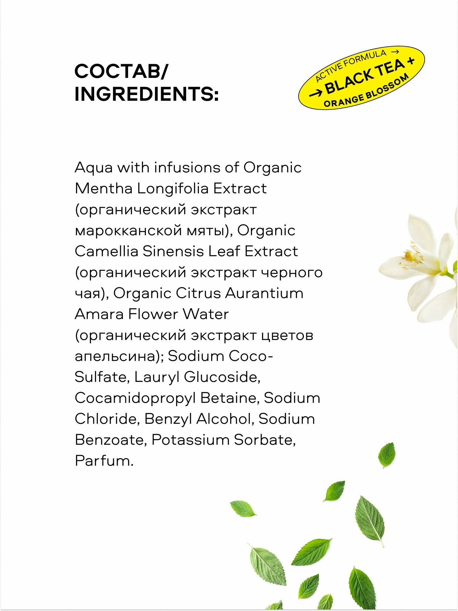 | Состав | Aqua with infusions of Betula Alba Leaf Extract (экстракт листьев березы), Juniperus Communis Wood Oil (масло можжевельника), Linolenic Acid (омега-3); Sodium Coco-Sulfate, Cocamidopropyl Betaine, Lauryl Glucoside, Sodium Chloride, Citric Acid, Benzyl Alcohol, Sodium Benzoate, Potassium Sorbate, Parfum |