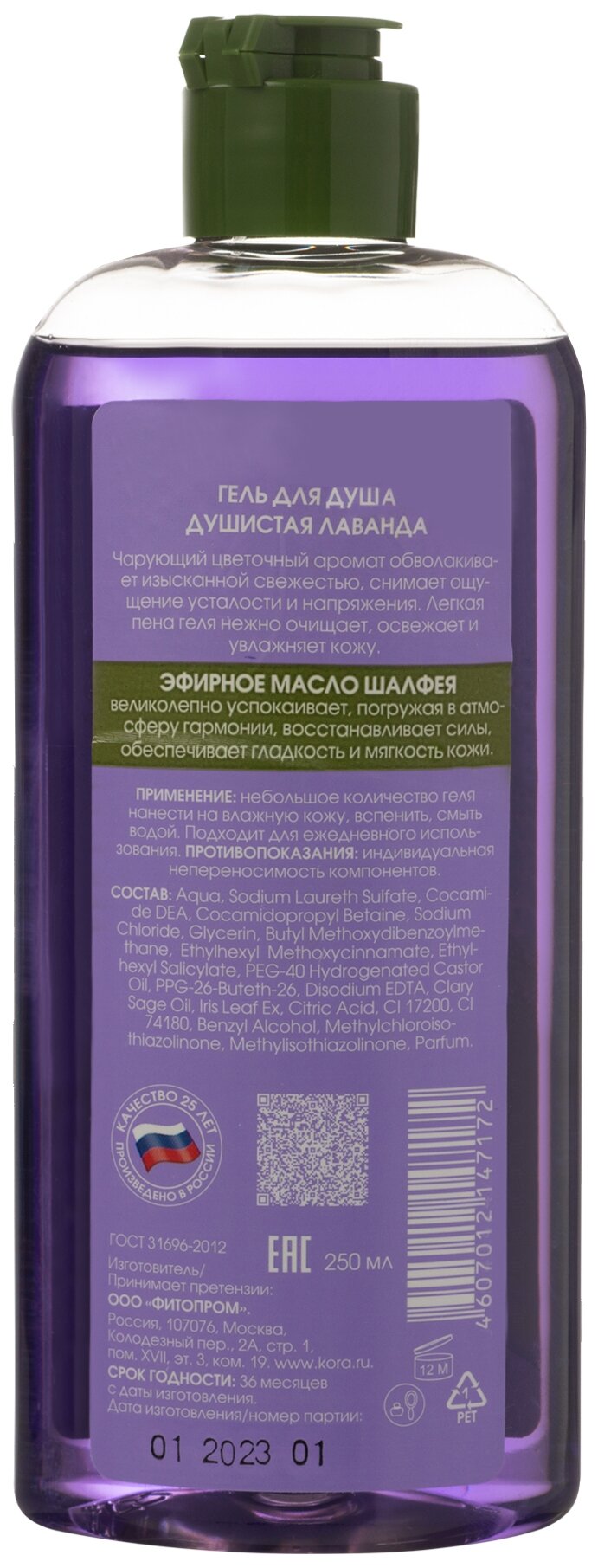 Гель для душа KORA «Душистая лаванда», 250 мл