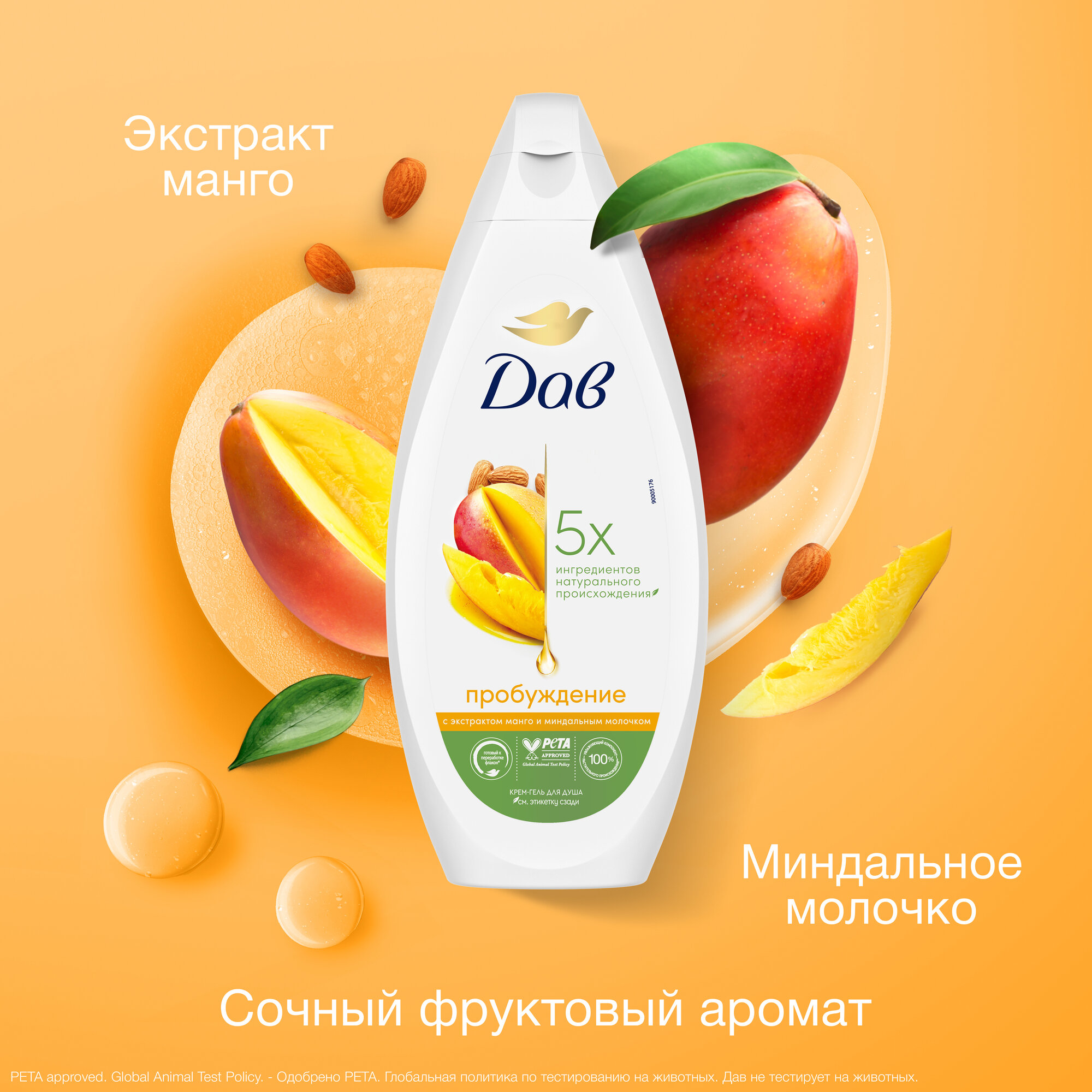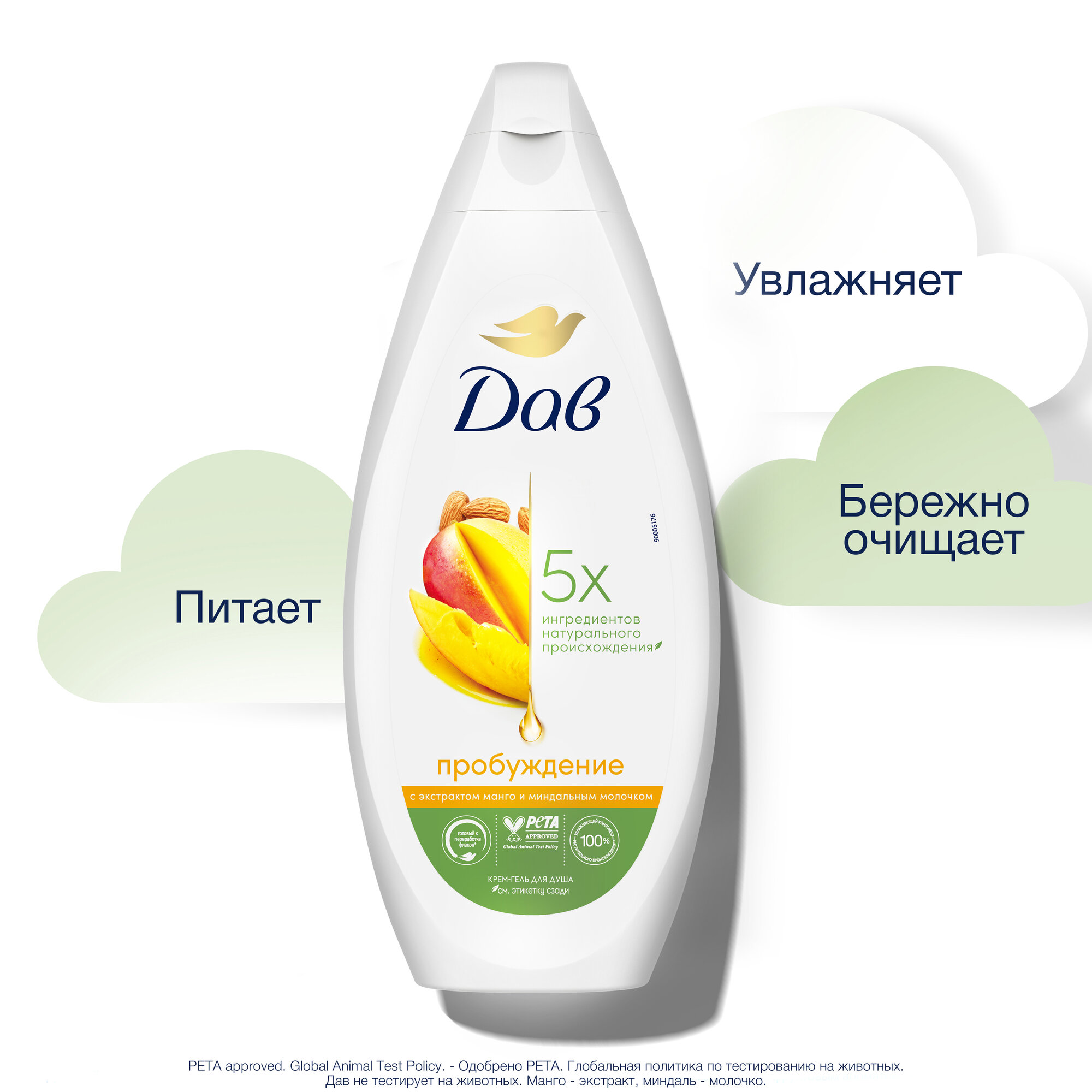 Купить Гель для душа женский Дав Пробуждение с Маслом миндаля и Манго бессульфатный, для всей семьи 250 мл,
