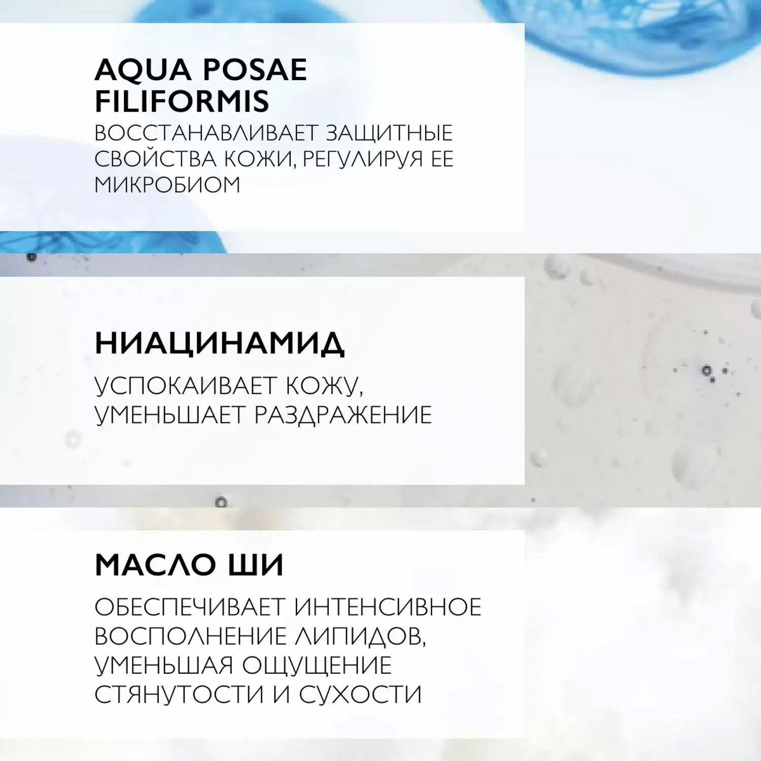 | Состав | масло ши (карите) – обеспечивает естественное восполнение гидролипидной мантии на поверхности эпидермиса, интенсивно увлажняет, смягчает, снимает раздражение ниацинамид – успокивает кожу термальная вода La Roche-Posay – увлажняет, уменьшает чувство дискомфорта, защищает, обладает антиоксидантными свойствами Состав (без парфюмерных отдушек, мыла и парабенов): aqua / water, glycerin, sodium laureth sulfate, peg-200 hydrogenated glyceryl palmate, coco-betaine, polysorbate 20, peg-7 glyceryl cocoate, niacinamide, acrylates copolymer, butyrospermum parkii butter / shea butter, citric acid, cocamide mea, disodium edta, mannose, polyquaternium-11, sodium benzoate, sodium chloride, sodium hydroxide, styrene/acrylates copolymer, viteoscilla ferment. |