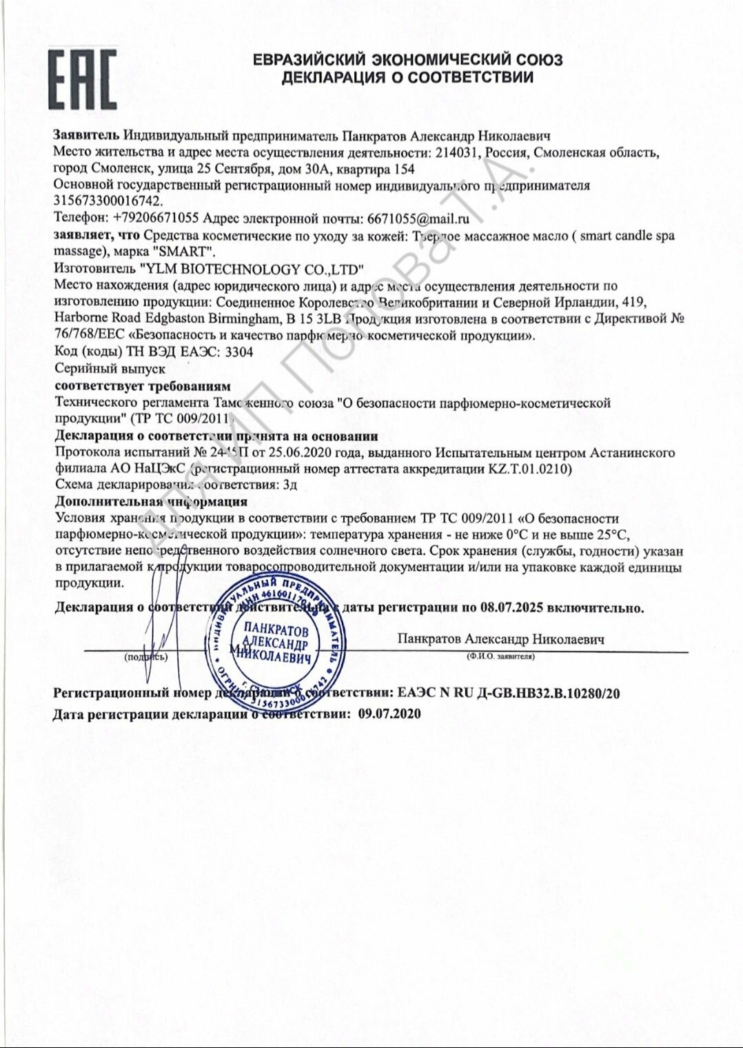 Smart master Умная свеча для ухода за кожей 100мл аромат Бали