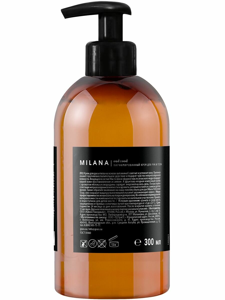 Крем для ухода за кожей Grass Milana Oud Rood, парфюмированный, для рук и тела, 300 мл