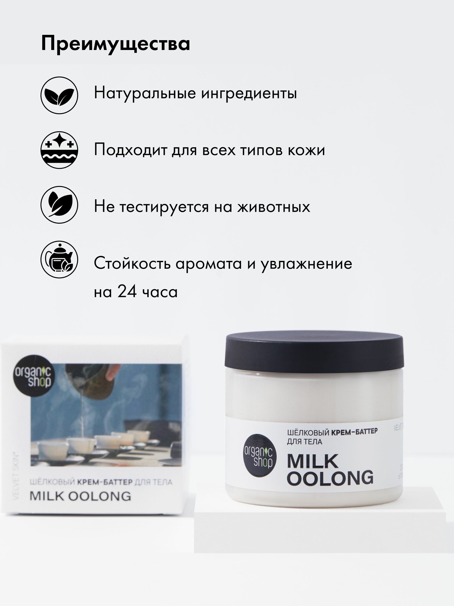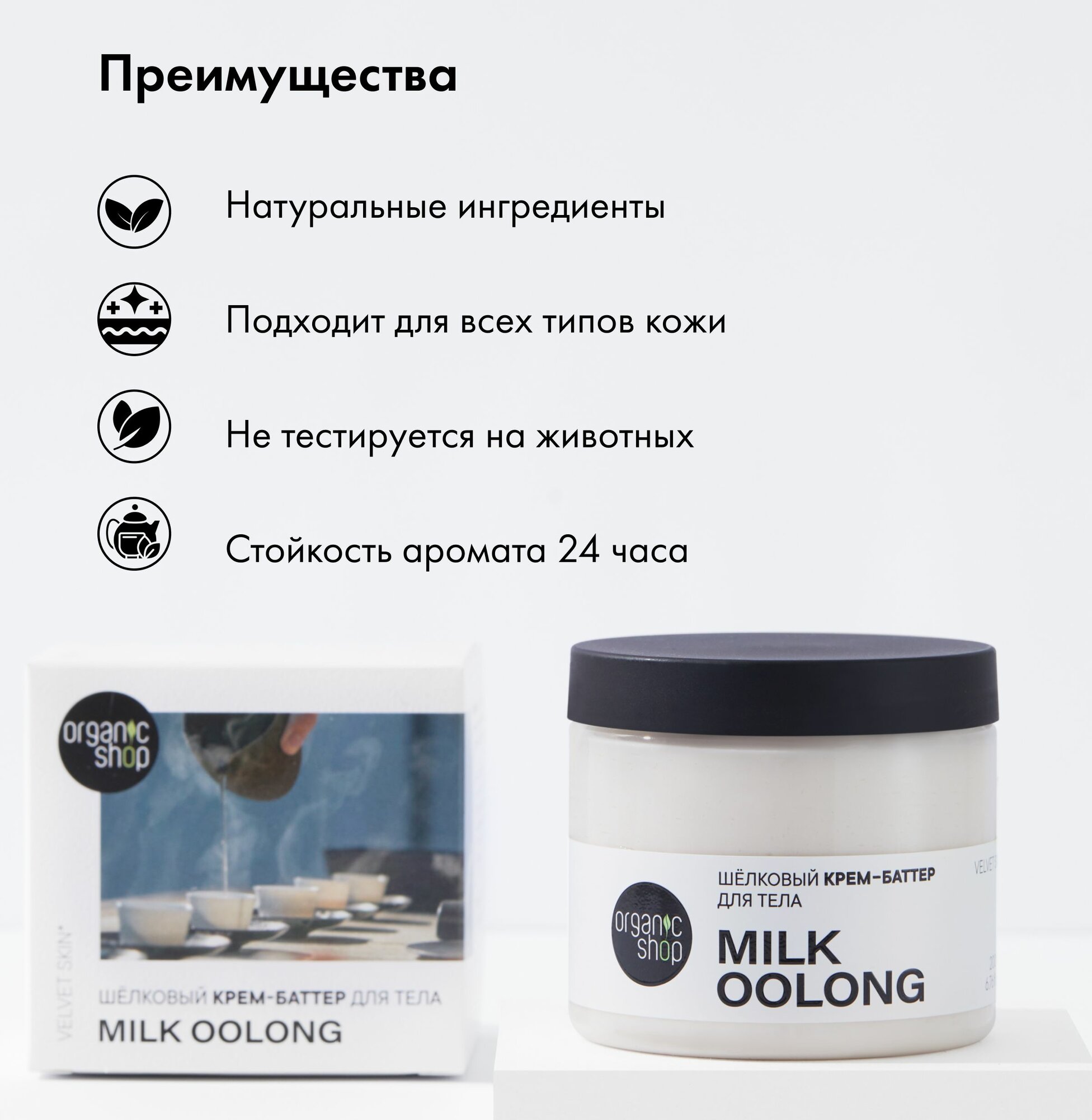 Organic Shop Milk Oolong Взбитый крем баттер для тела увлажняющий и питательный с ароматом молочного улуна 200 мл интересное:
